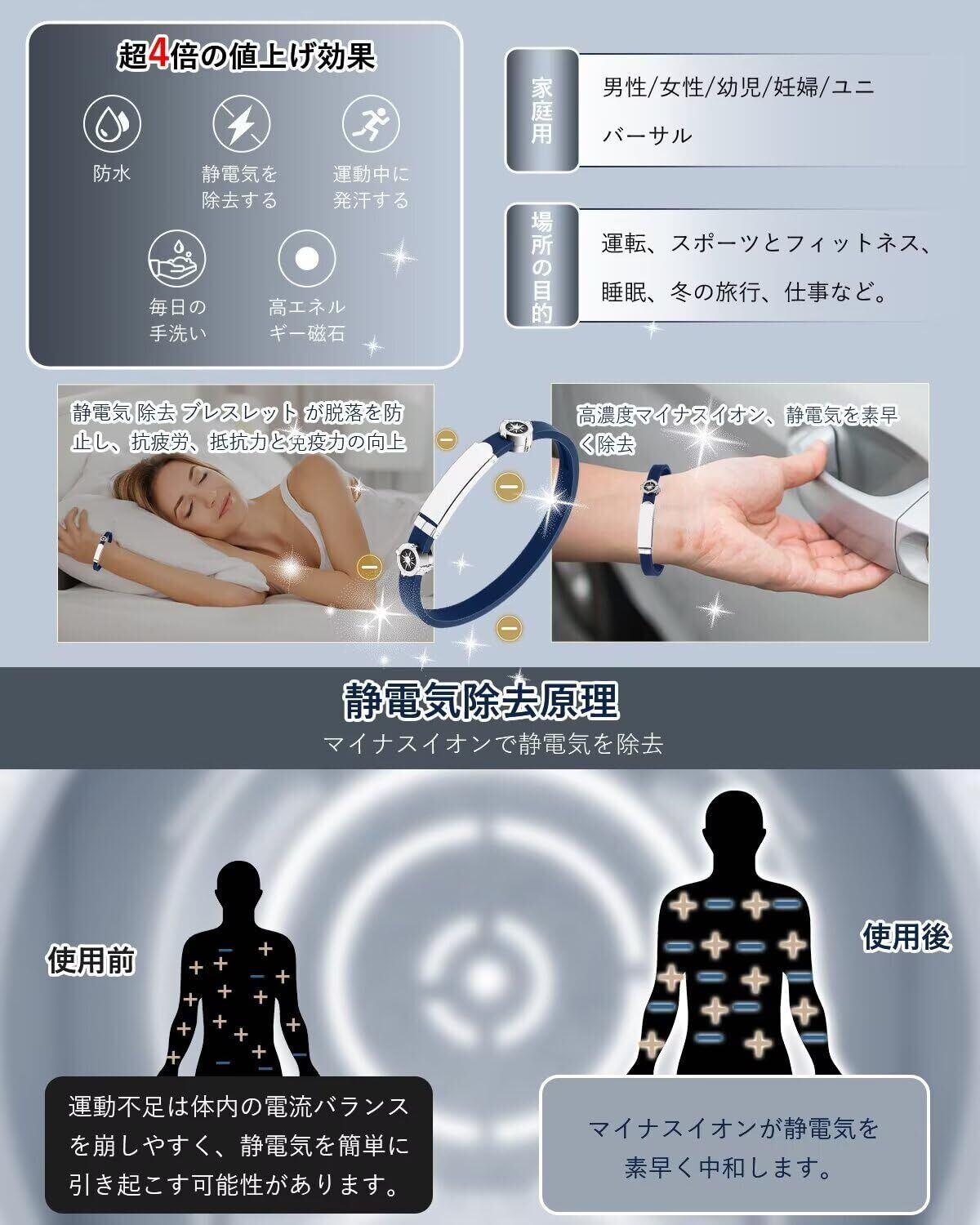 [Sungale] 静電気除去 ブレスレット最强 強化モデル レディース メンズ 磁気 スポーツ シリコンブレスレット 防水 静電気防止グッズ 静電気軽減 サイズ調整可能 #ZNZ