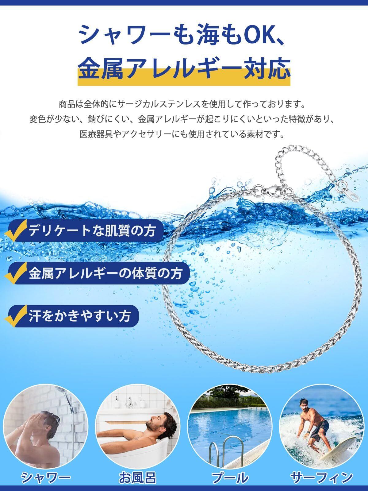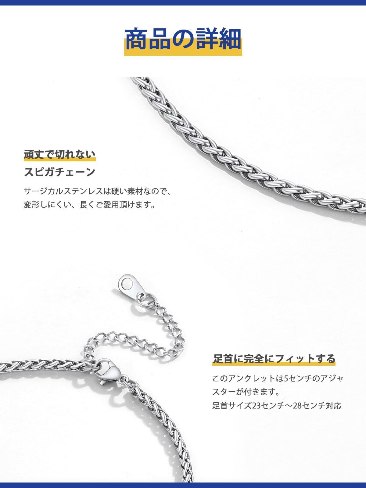 アンクレット メンズ レディース 付けっぱなし サージカルステンレス 金アレ対応 お風呂 温泉 海 使用可能 夏 ファッション アクセサリー 男女兼用[スピがチェーン 幅3mm]