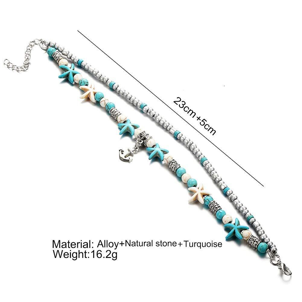 Lucbuyボヘミアン足首、足首のブレスレット、青と白の多層グラマービーチ砂手作りアンクレット足女性らしい女の子の贈り物、デート/パーティー/卒業/ショッピング/ビーチに適して