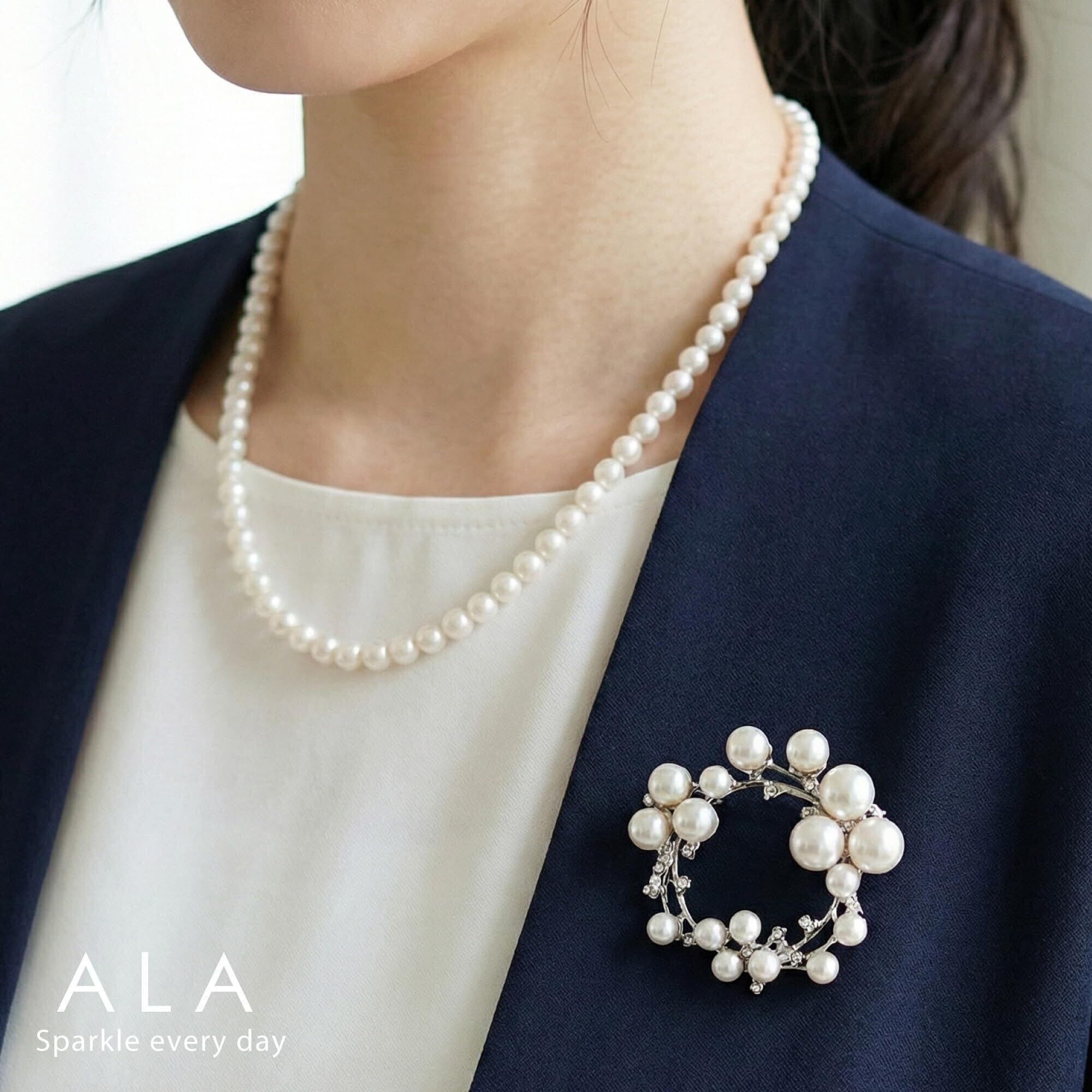 【人気商品】[ALA] ブローチ 卒業式 入学式 パール サークル ランダム 落下防止 ストッパー付き 紛失防止 コサージュ フォーマル 花 ラウンド 卒園式 入園式 ママスーツ レディース