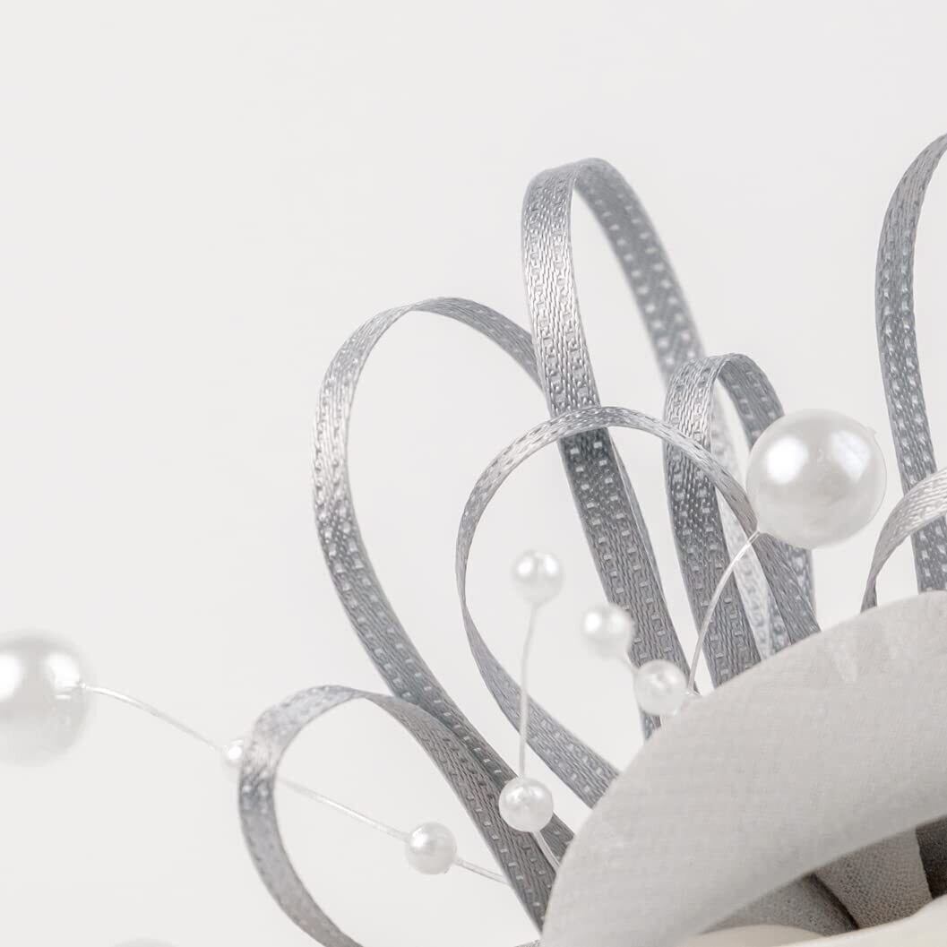 サイドリボンが可愛らしさを、細めのリボンとパールが揺れて輝きを演出します。