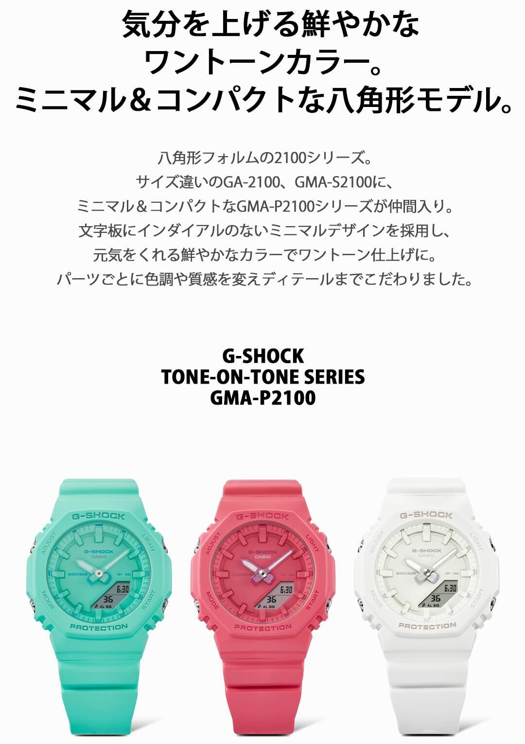 レディース向けG-SHOCK: 人気のデジタル・アナログコンビモデルGMA-S2100を更に小型化したモデルです。GMA-P2100シリーズは、バンドの長さも短くすることで、華奢な手元によりフィットするように装着性を高めております。