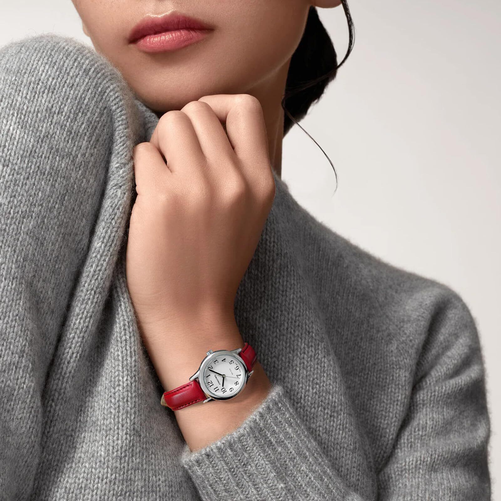 【快適な女性用レザーウォッチ】一日中、心地よく着用できるソフトレザーストラップです。ぴったりフィットするように調整できるので、朝のコーヒータイムから深夜のプランまで、快適にお使いいただけます