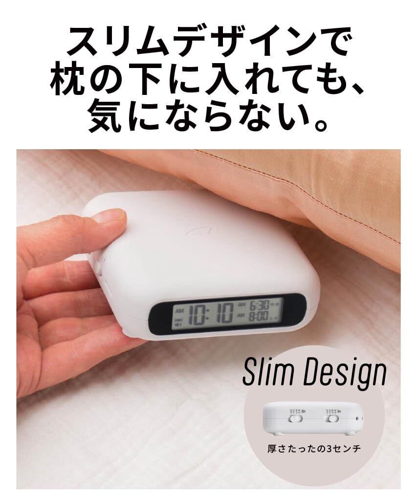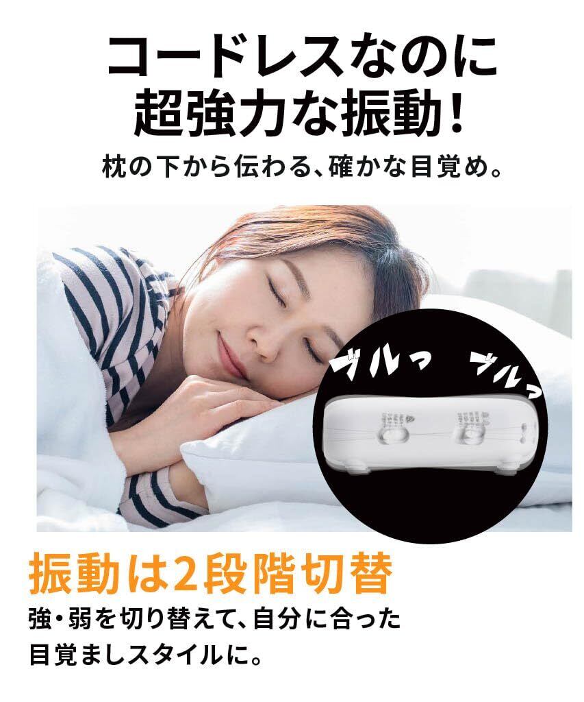 【朝の不安をゼロにする超強力振動】 スマホや音の目覚ましに慣れてしまった方の最終兵器。枕の下から脳に直接届くような、強力かつ静かな振動で「絶対に負けられない朝」を支えます。