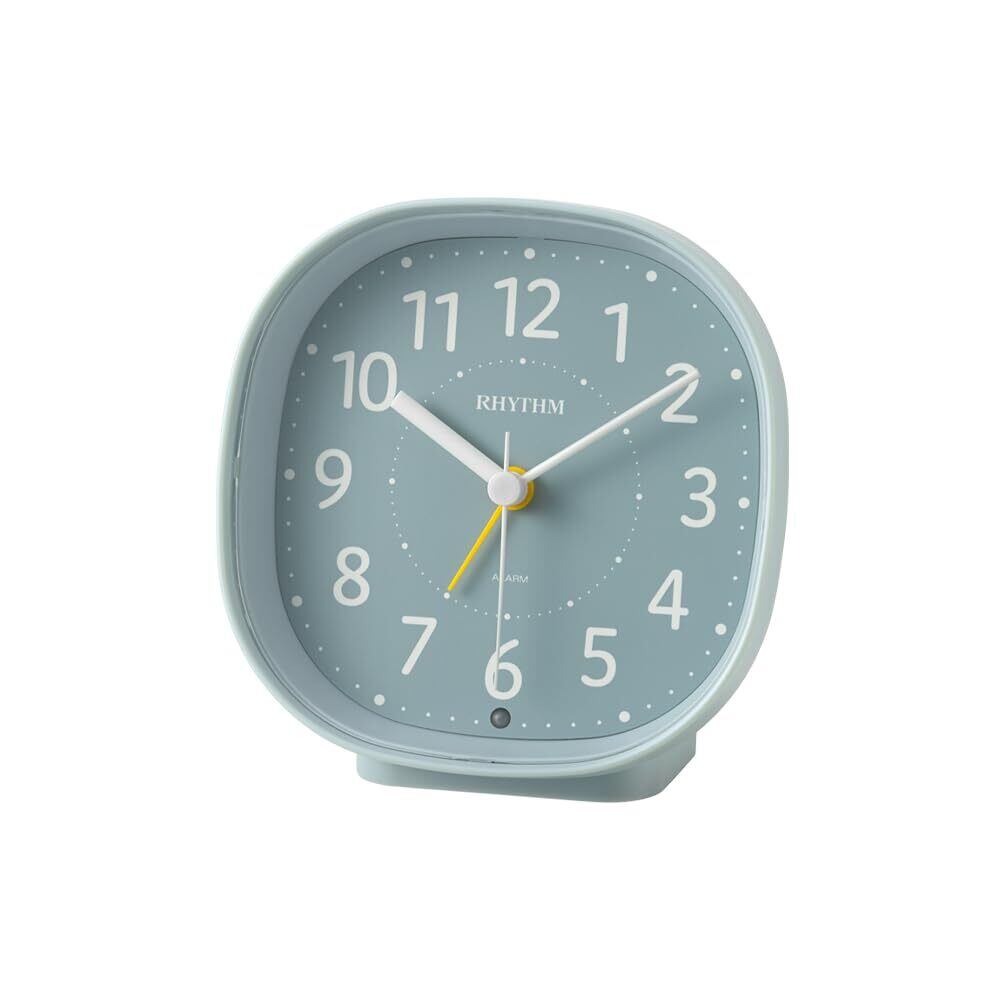 リズム(RHYTHM) 目覚まし時計 アナログ 電子音 アラーム (スヌーズ 付) 音が静かな 連続秒針 ユニバーサルデザイン フォント ライト 青 10.4×10.1×5.7cm リフレR674 8RE674SR04