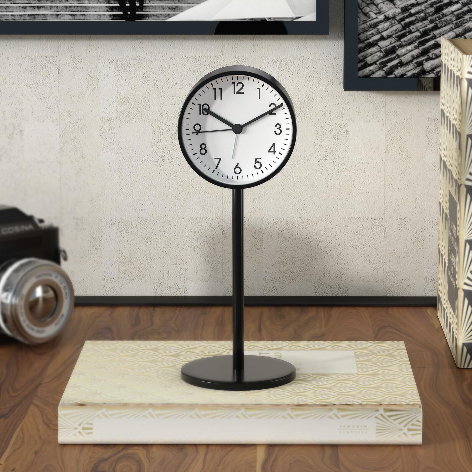 【数量限定】置き時計 目覚まし時計 卓上時計 クロック 金属製 見やすい 北欧 おしゃれ シンプル 連続秒針 アラーム 静音 乾電池 モダン 円型 学生 卓上 日常生活 通勤 寝室 リビングルーム 室内装飾 キッチン プレゼント (Aブラック)