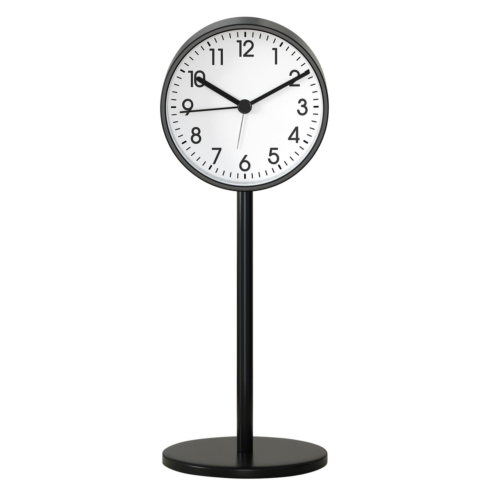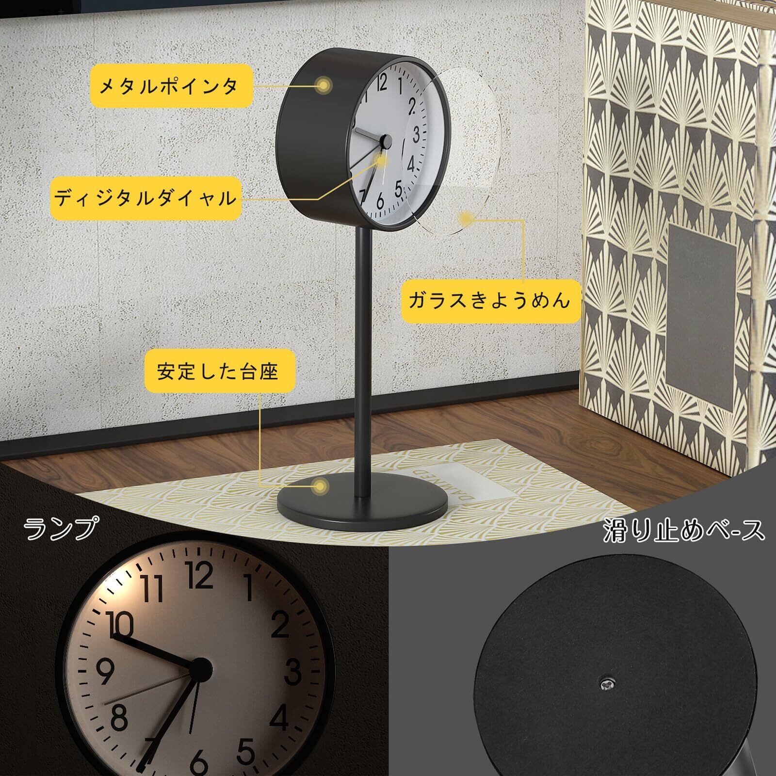 置き時計 目覚まし時計 卓上時計 クロック 金属製 見やすい 北欧 おしゃれ シンプル 連続秒針 アラーム 静音 乾電池 モダン 円型 学生 卓上 日常生活 通勤 寝室 リビングルーム 室内装飾 キッチン プレゼント (Aブラック)