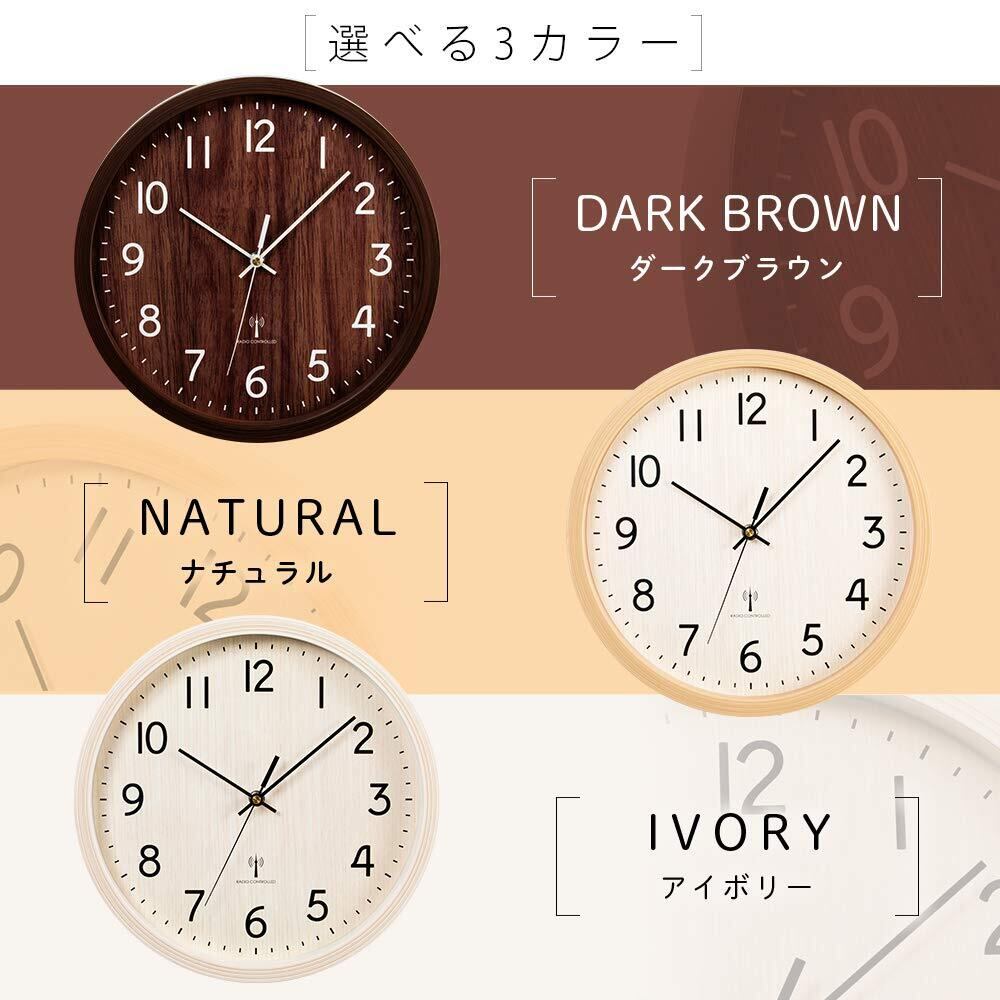 アイリスプラザ 掛け時計 電波時計 ブラウン 直径30cm 文字盤あり 電波受信していつでも正確な時間を刻む 軽量680g 薄型厚み4.5cm 秒針は一秒一秒「チクタク」と進むステップムーブメントタイプ 一人暮らし シンプルデザイン 秒針 メーカー1年付き PWCRR-30-T
