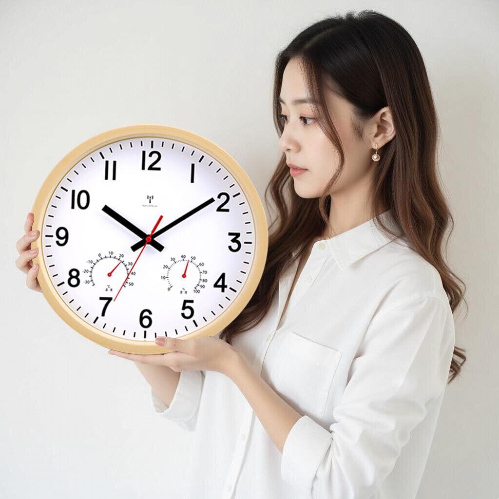 【2022最新】掛け時計 電波時計 温度 湿度 連続秒針 静か アナログ 直径30cm (ホワイト)B-8794