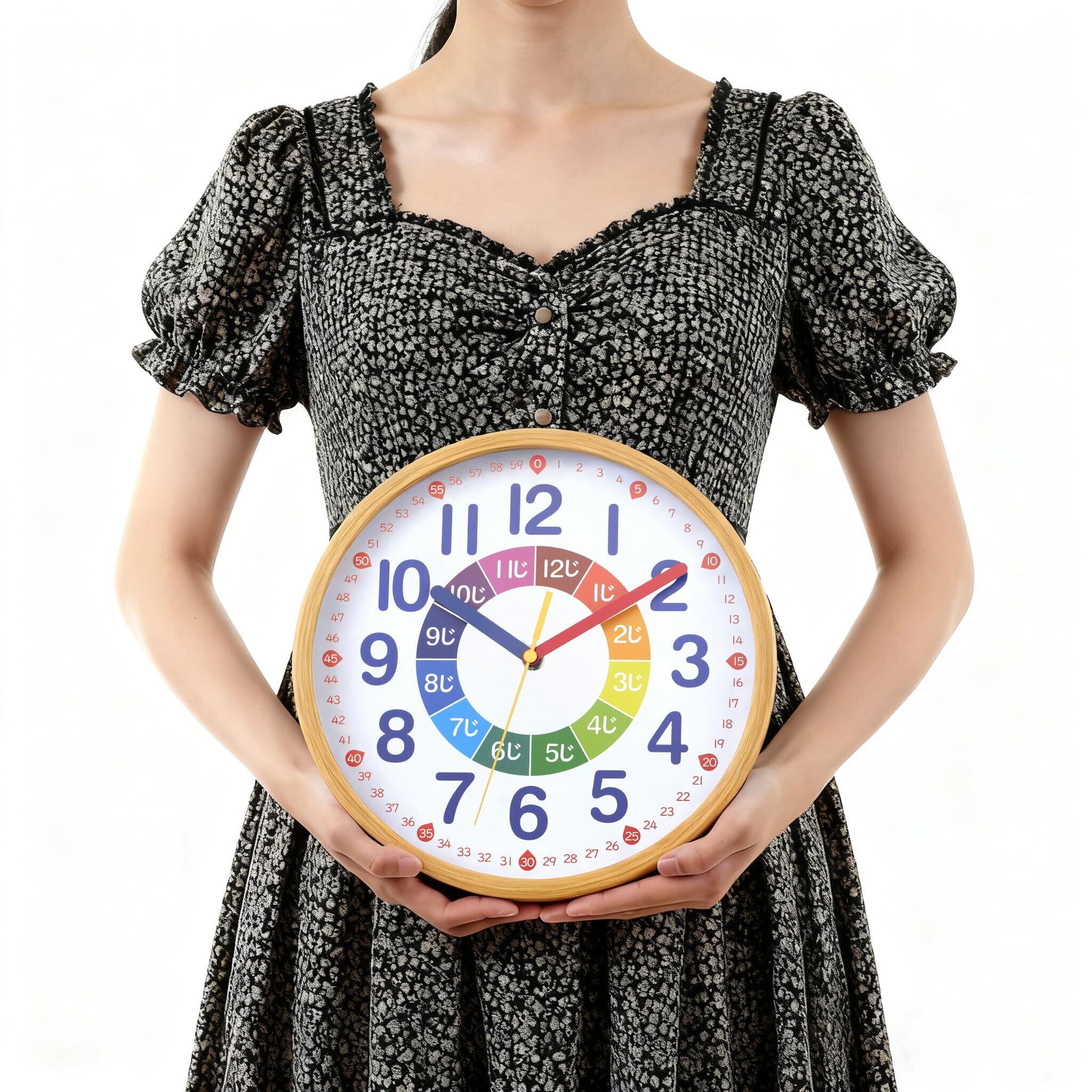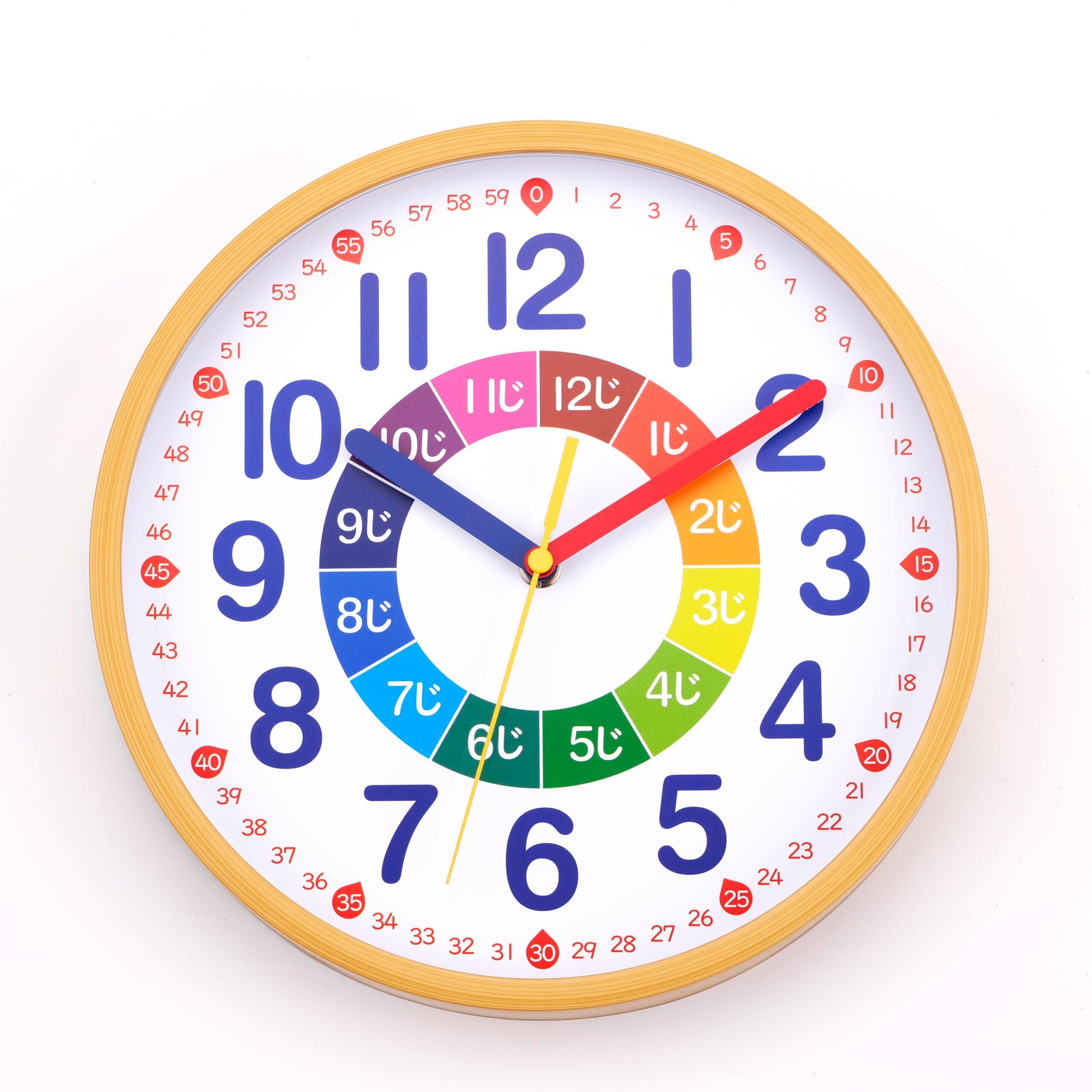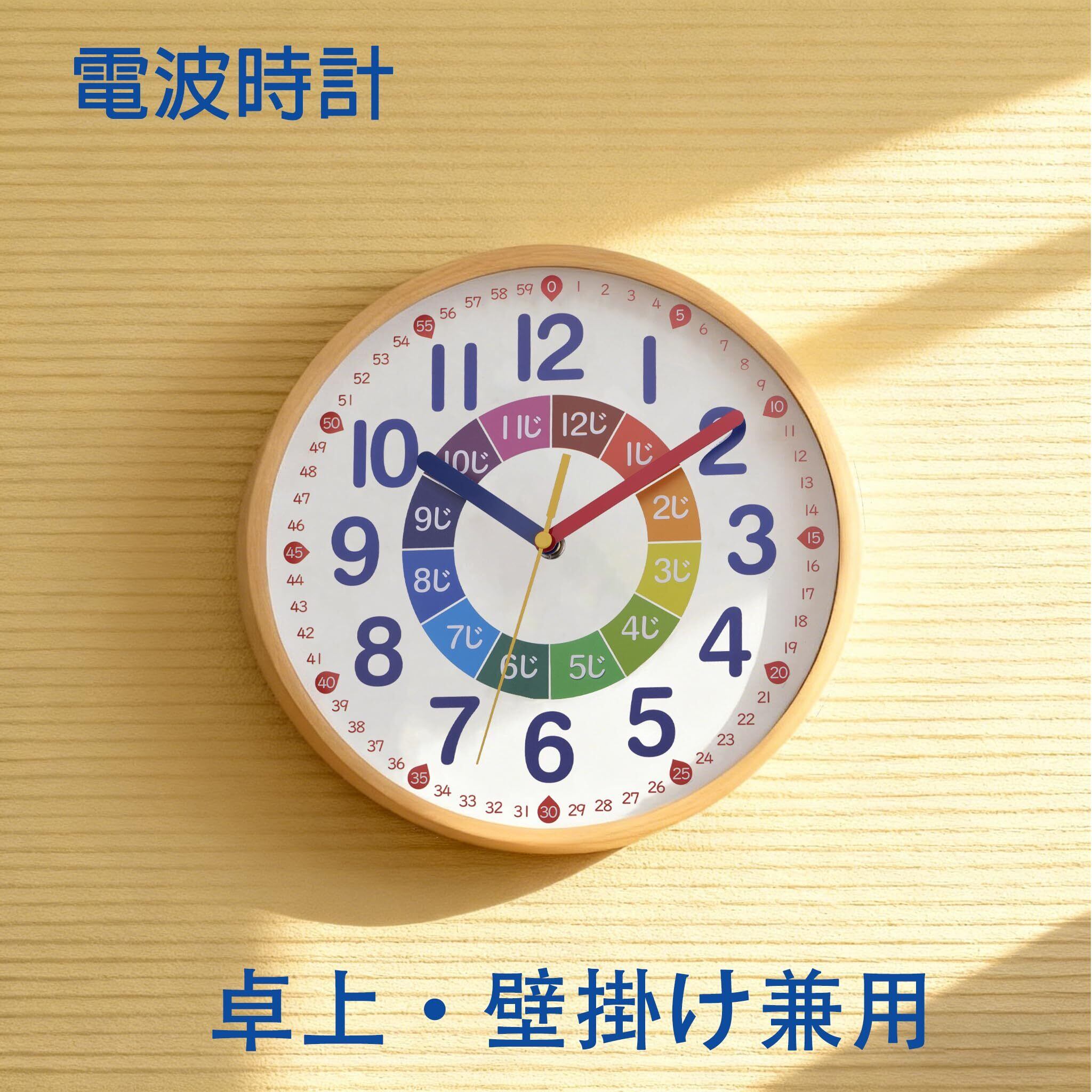 【2022最新】知育時計 掛け時計 電波時計 連続秒針 静音 直径25cm ナチュラル 置き掛け兼用 DB-017