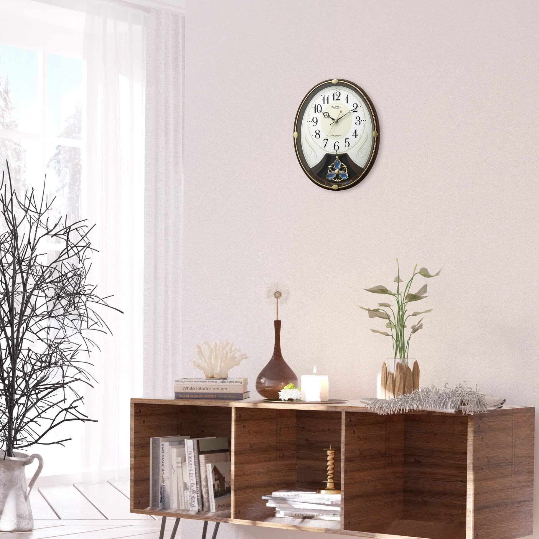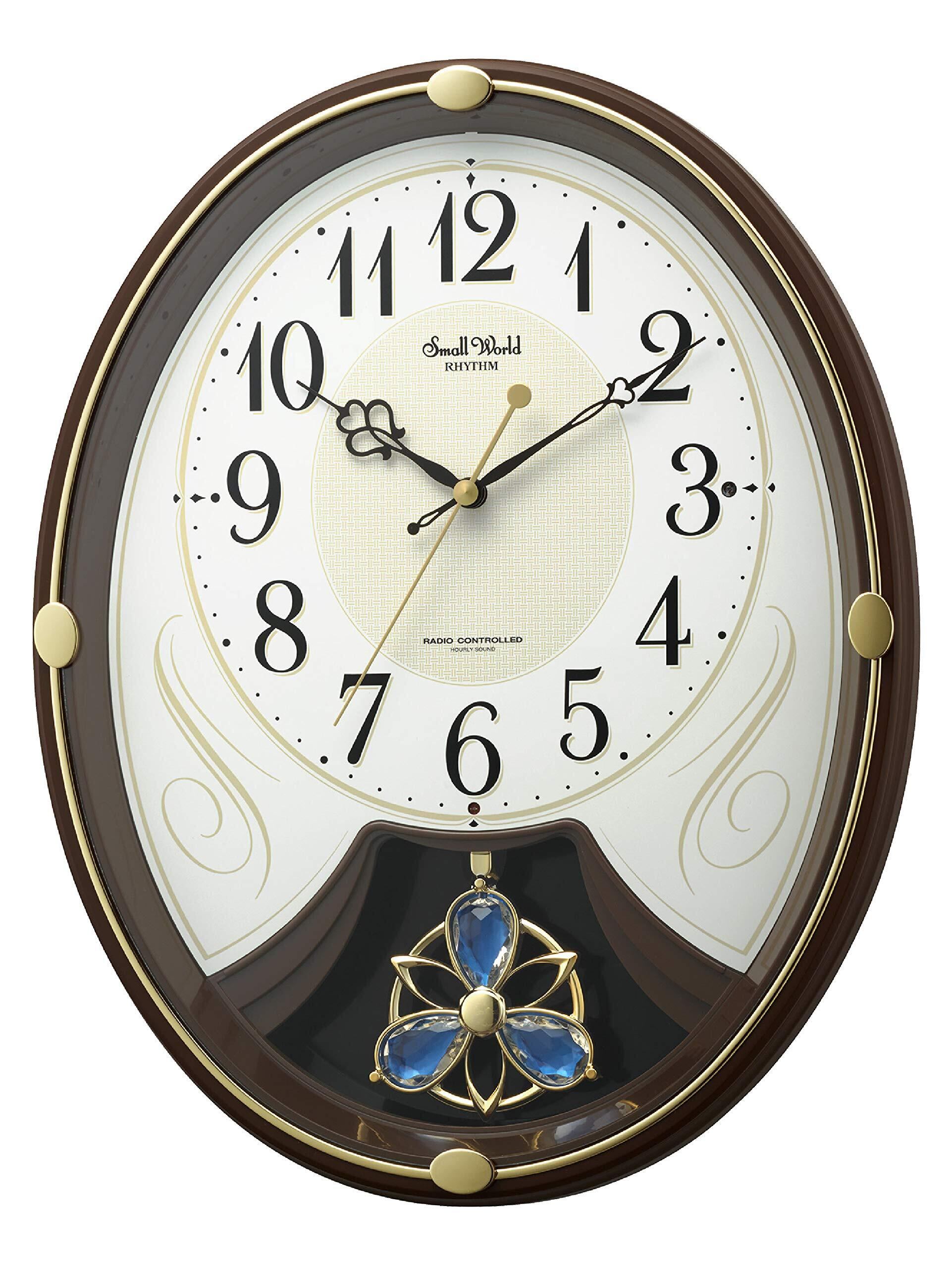 【人気商品】リズム(RHYTHM) 掛け時計 電波時計 6曲 メロディ 36.5x28.5x7.2cm 茶色 4MN554RH06