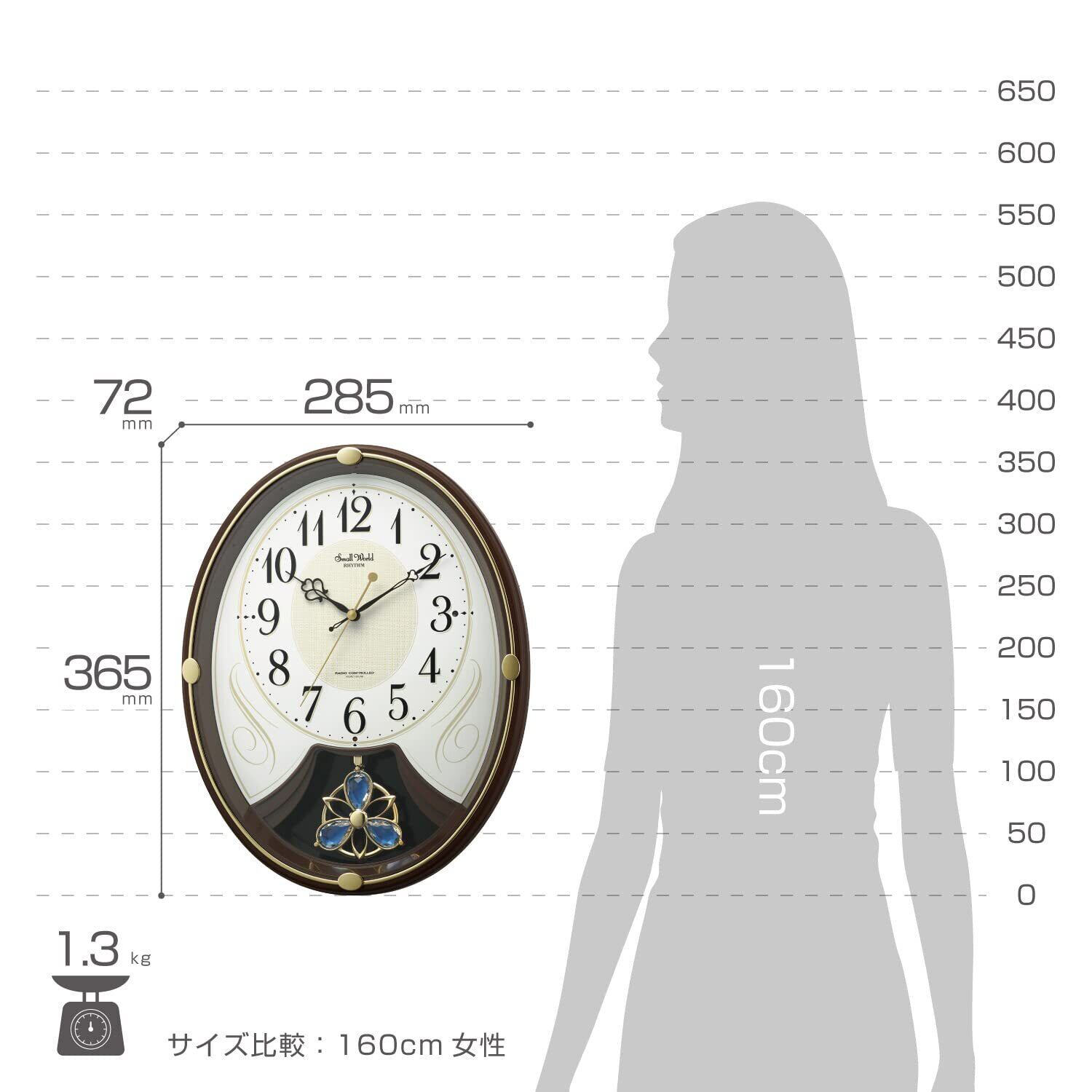 リズム(RHYTHM) 掛け時計 電波時計 6曲 メロディ 36.5x28.5x7.2cm 茶色 4MN554RH06