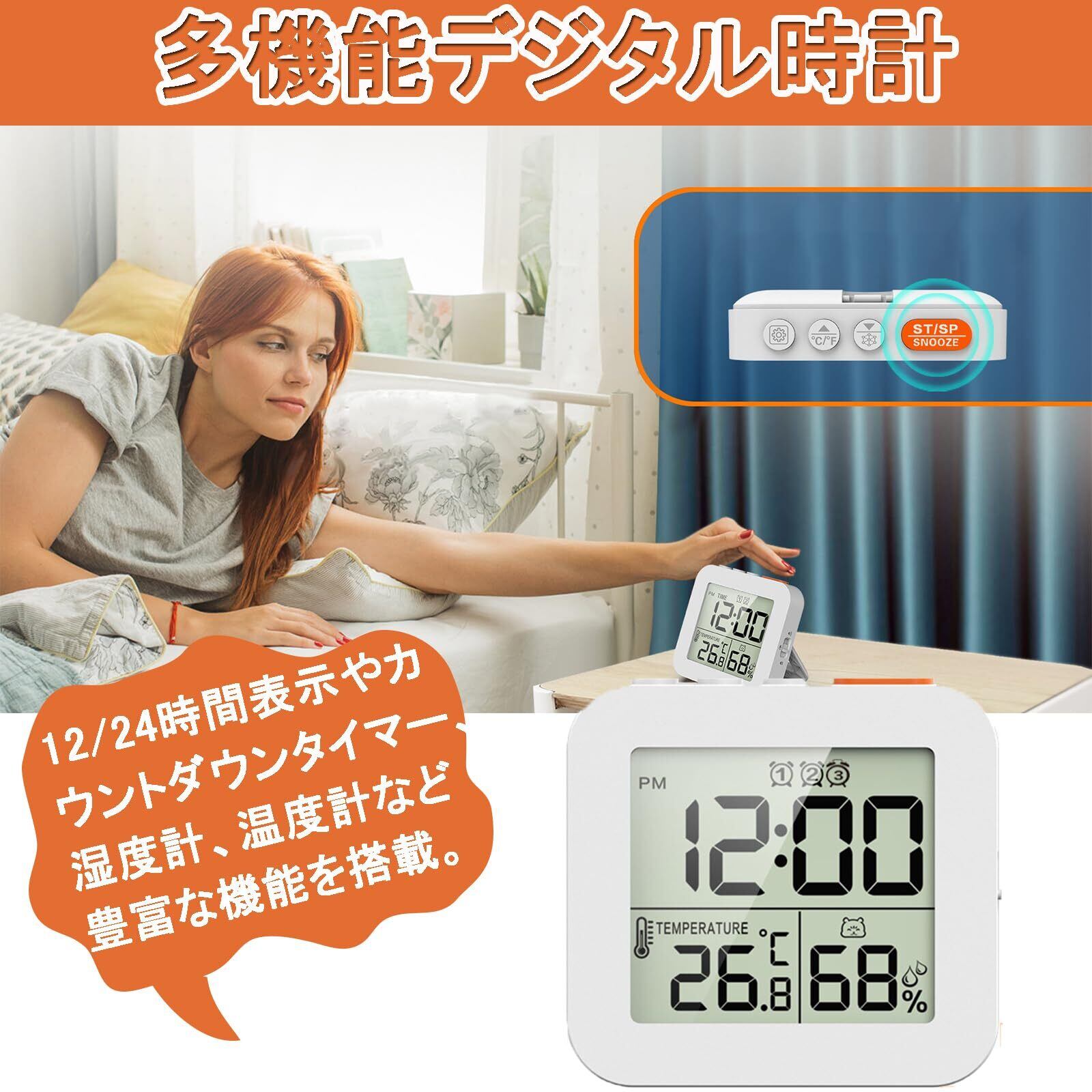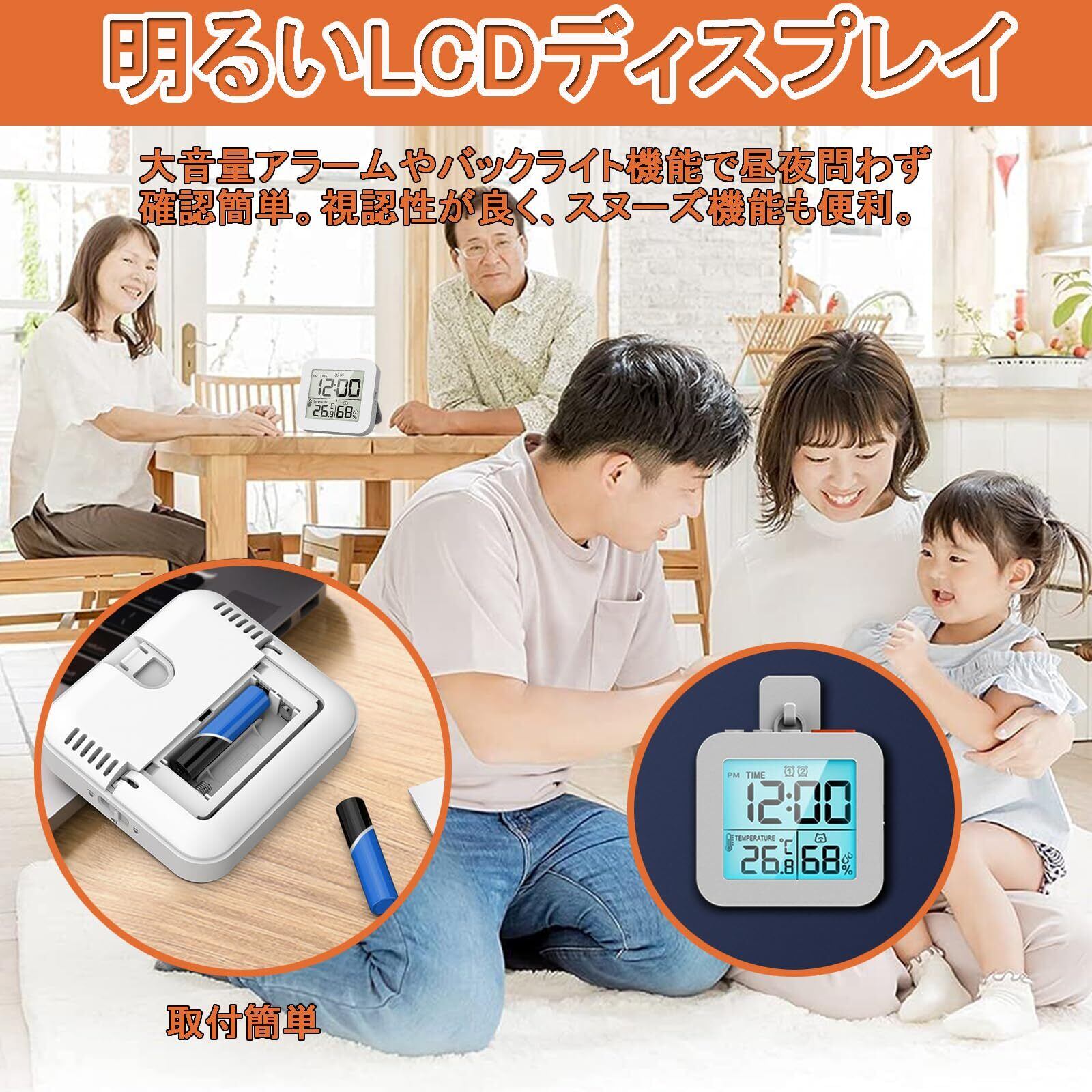 【明るいLCDディスプレイ】大音量アラームやバックライト機能で昼夜問わず確認簡単。視認性が良く、スヌーズ機能も便利。