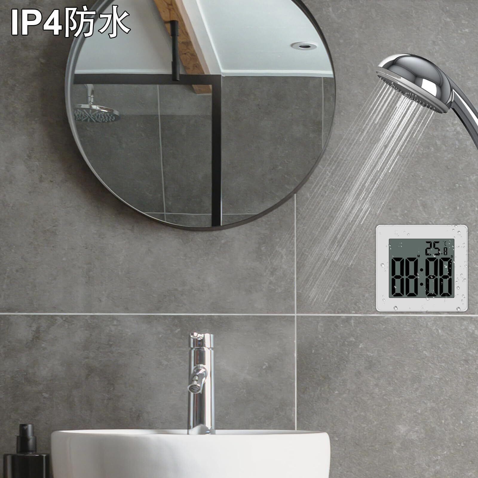 【時間管理ヘルパー】防水 時計は、水などのお金とエネルギーを節約しながら、スケジュールの時間を追跡するのに役立ちます。防水レベルIP24デジタルシャワークロックは、通常の使用には2本の単4電池(別売り)が必要です。