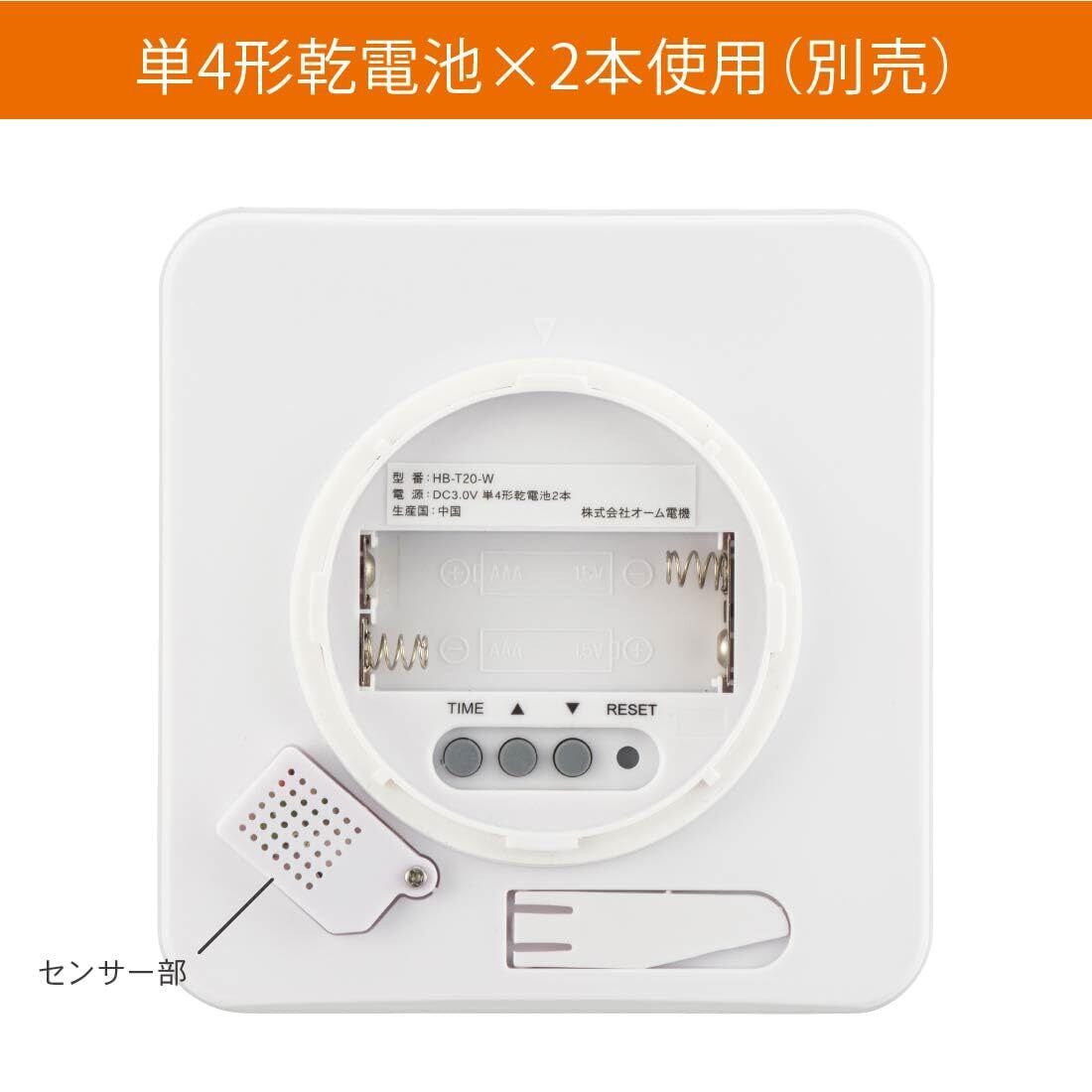 ◆外形寸法:(約)幅106×高さ110×奥行31mm ◆質量:約159g(電池除く) ◆材質:本体…ABS樹脂、表示画面…LCD、パネル部…アクリル樹脂、磁石…ゴム ◆使用電源:DC3.0V 単4形乾電池×2本(別売) ◆電池寿命:約1年(新品のアルカリ乾電池使用時) ◆付属品:書付取扱説明書