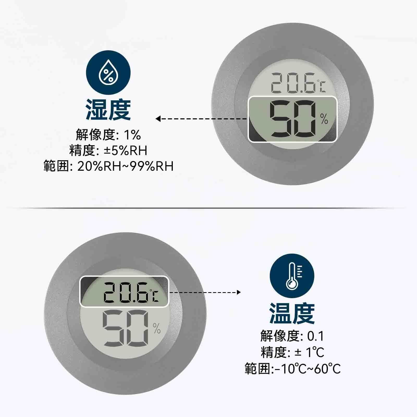 湿度範囲:20%RH~99%RH、精度:±5%RH。温度範囲:-10℃~60℃、精度:±1℃。機敏な反応、毎10秒1回結果を更新します。