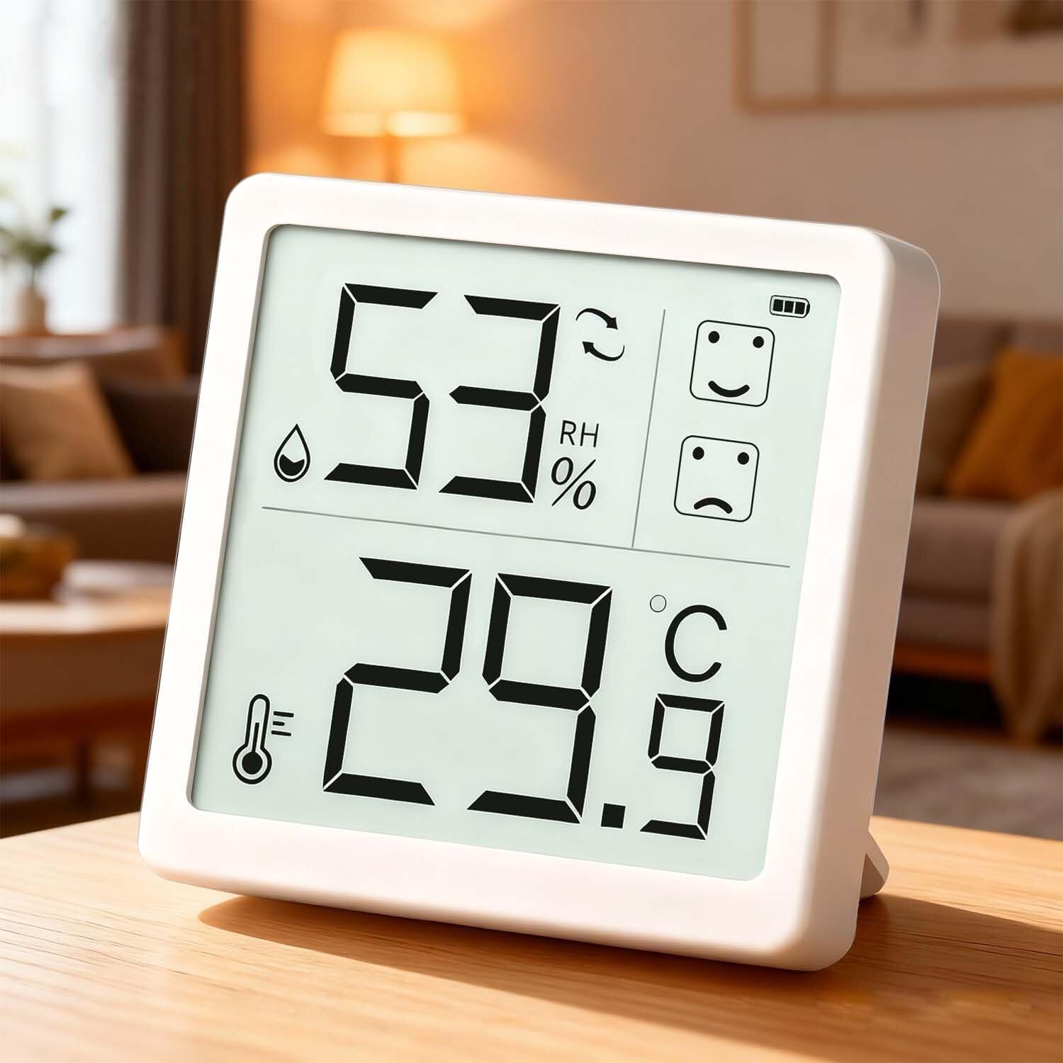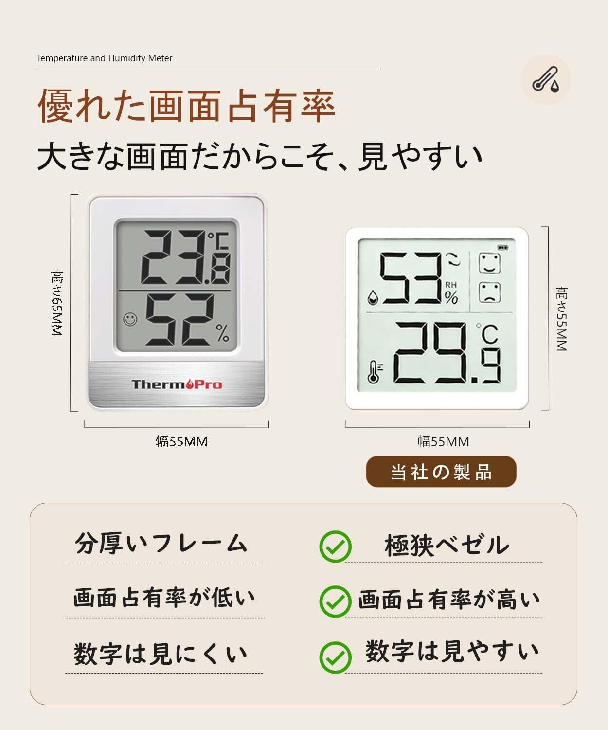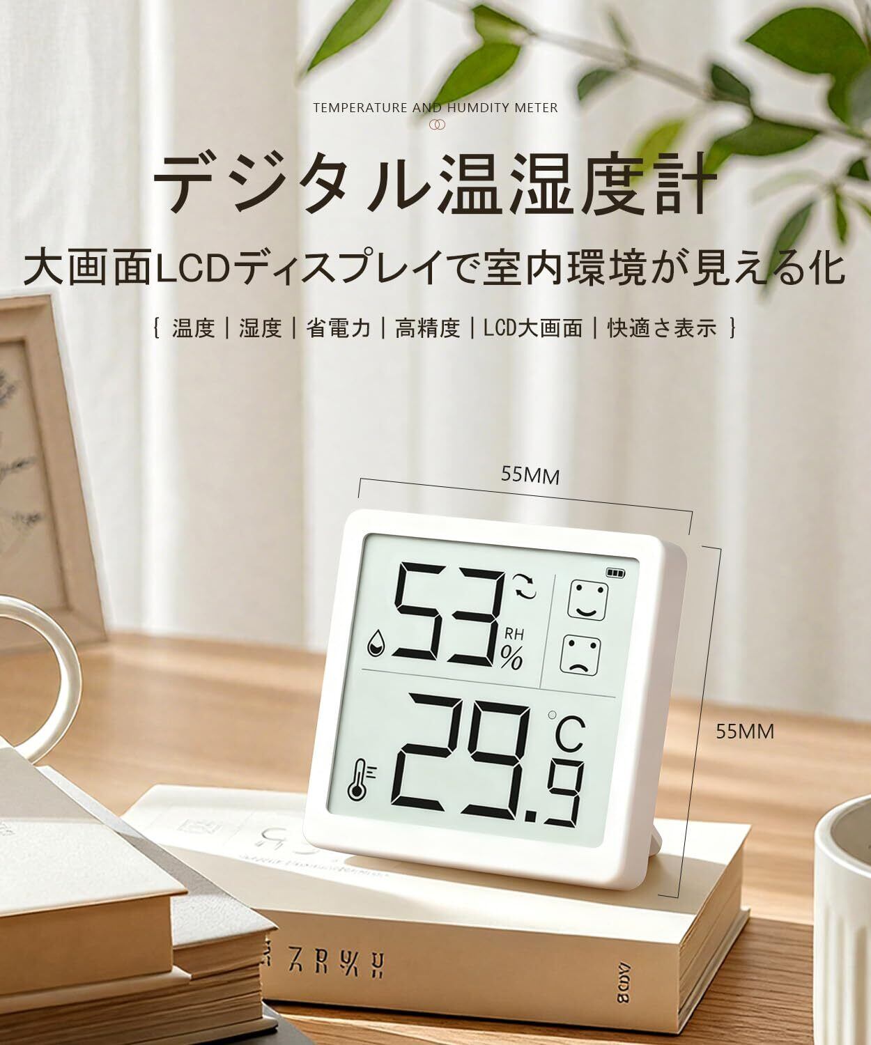 デジタル温湿度計 LCD大画面 省電力 高精度 スマイルアイコンで快適度が一目でわかる BPAフリー安心素材 背面ステッカー付き スタンド&壁掛け2Way 室内用 (シンプルアイコン款)