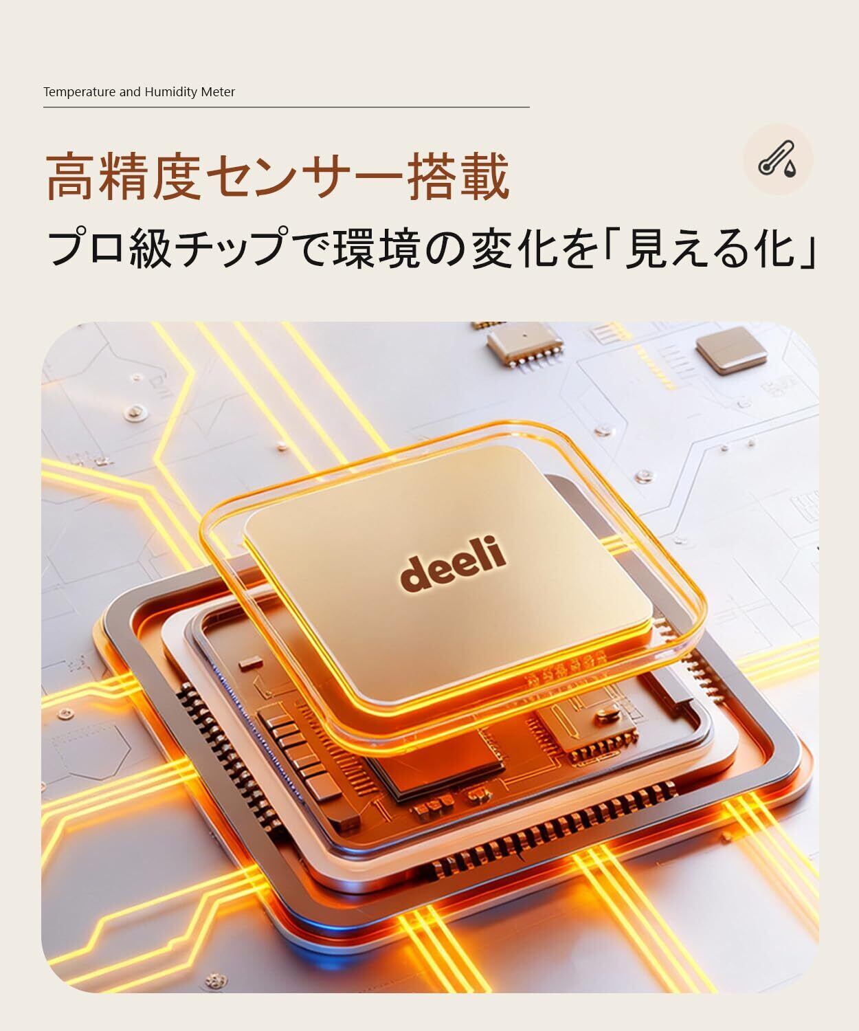 【広範囲測定 & 信頼性の高い精度】 高精度センサーにより、広範囲(温度:-9.9℃〜55℃ / 湿度:0%〜99%RH)を正確に測定。迅速なデータ更新で環境変化を敏感にキャッチし、信頼性の高い計測値を提供します。