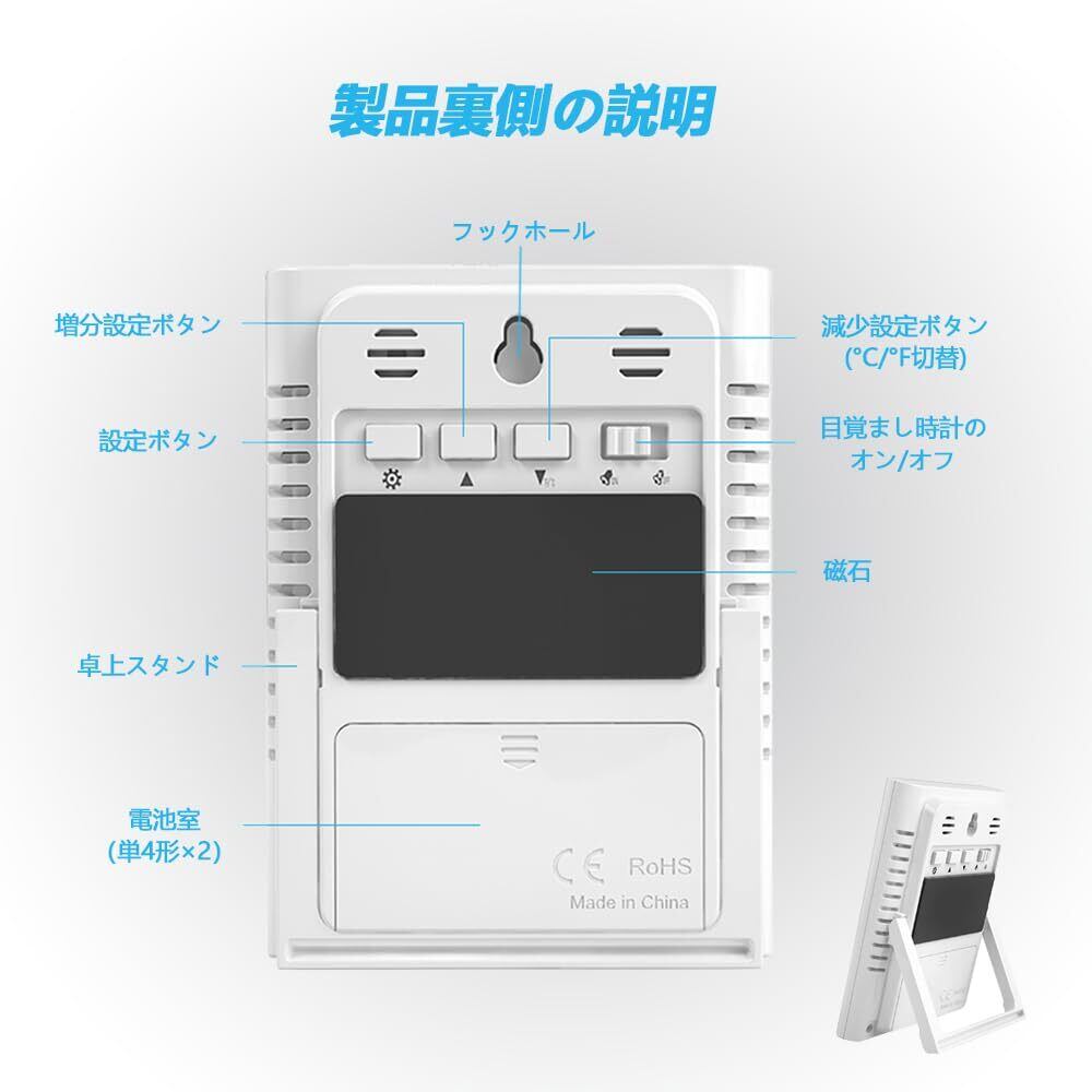 デジタル温湿度計 室内温度湿度計 LCD大画面 バックライト機能 快適レベル 時計 カレンダー アラーム 壁掛け 卓上 マグネット 健康管理 温度管理 日本語取扱説明書