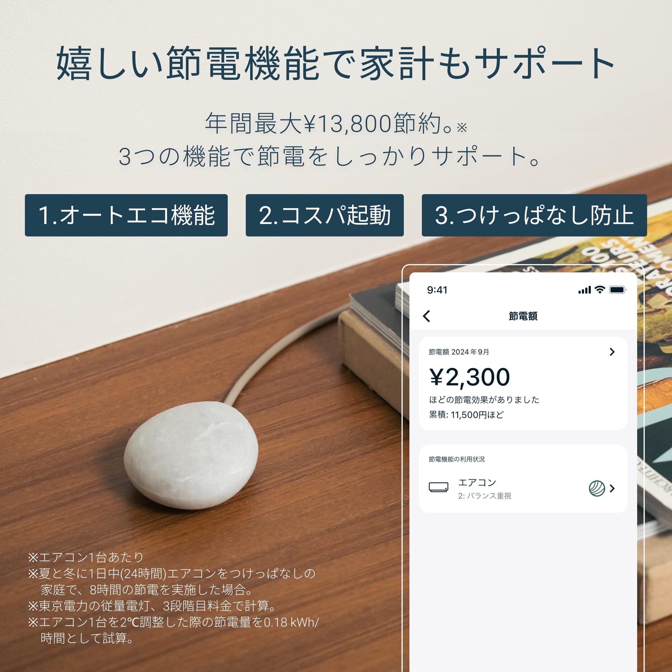 【空気をととのえるスマートリモコン】エアコンの節電機能を備えた次世代のスマートリモコン。家電の遠隔操作やアレクサなどのスマートスピーカーにももちろん対応。