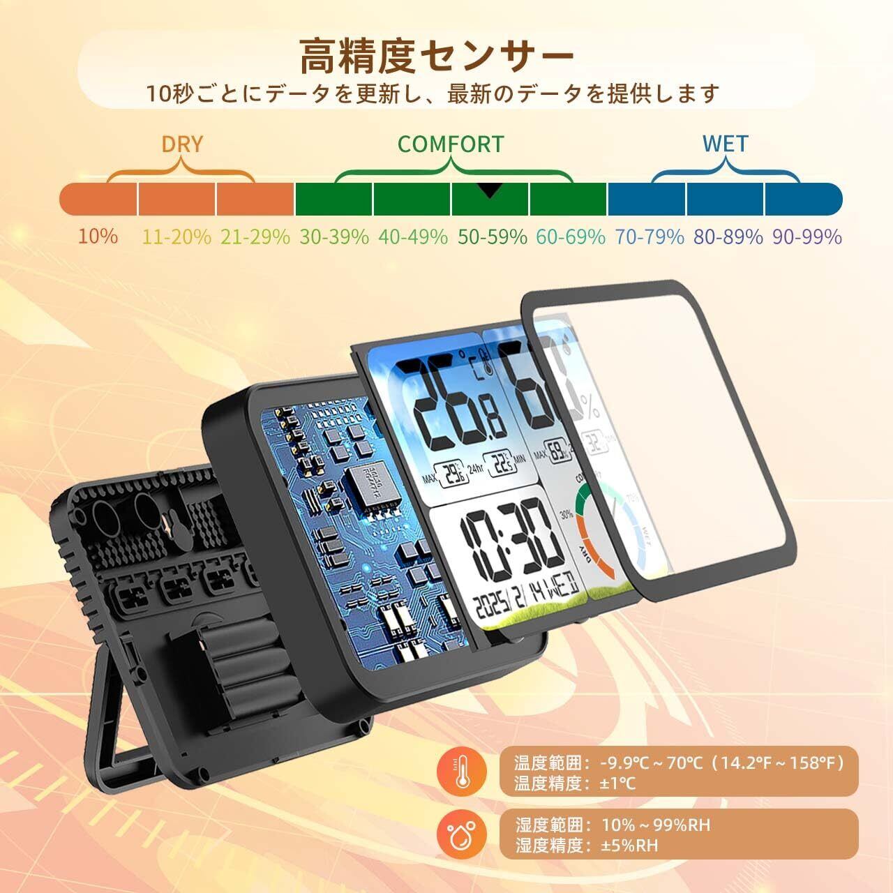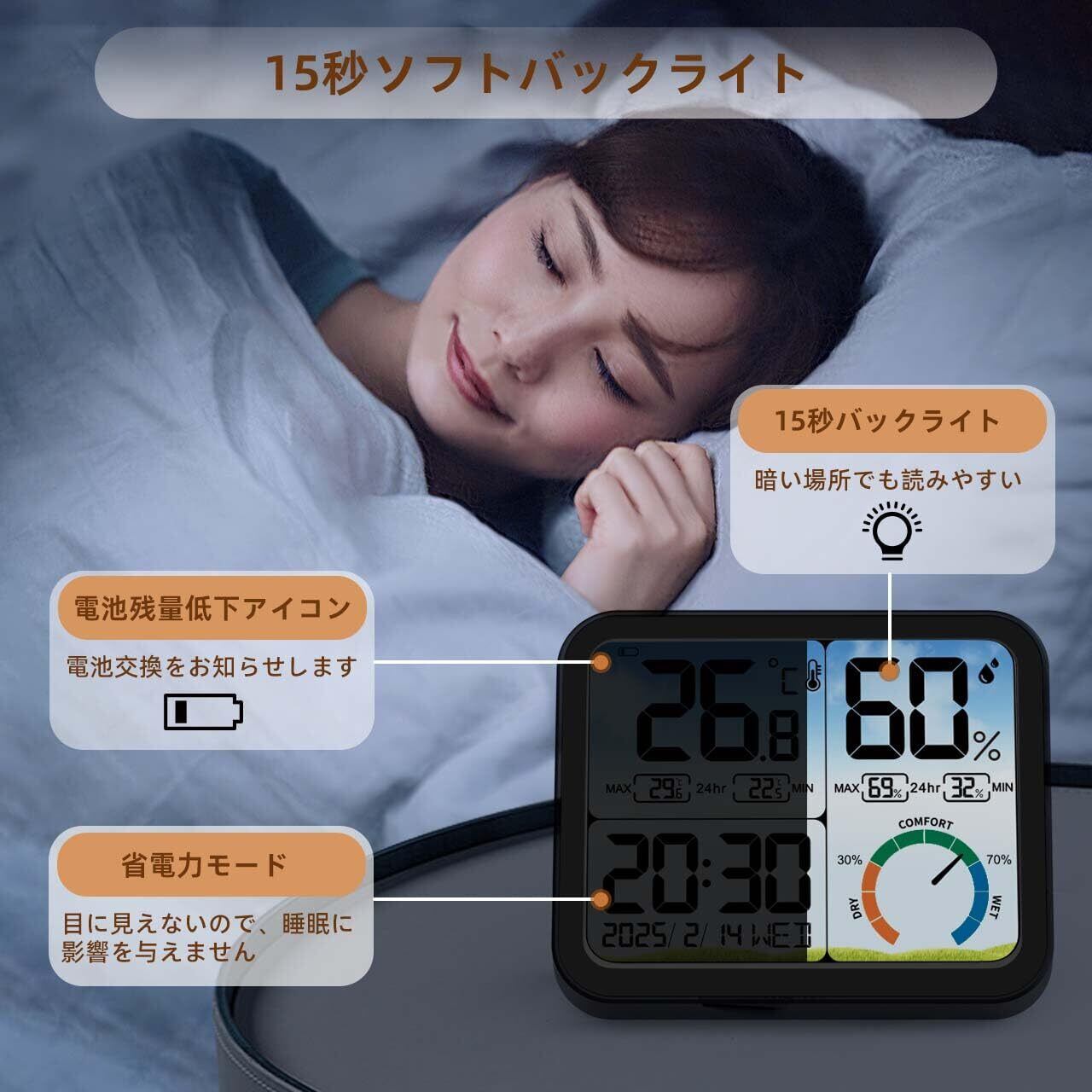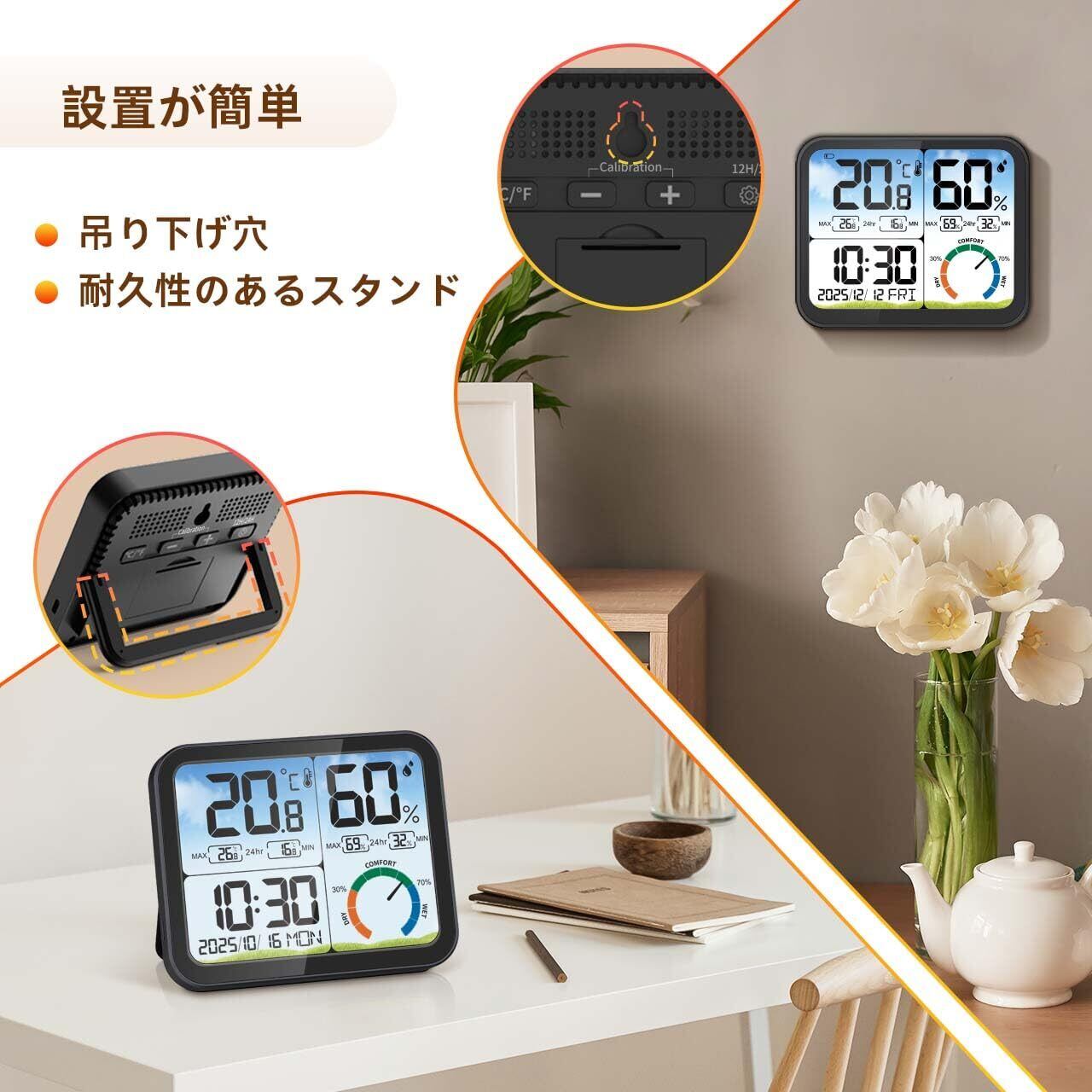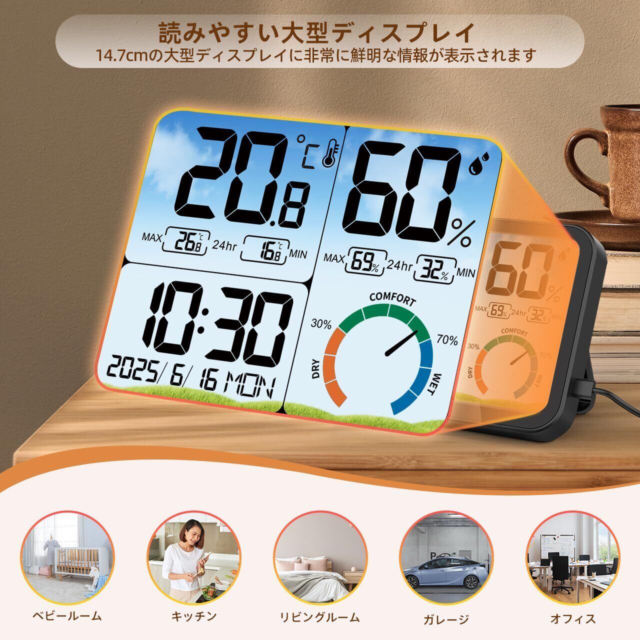 VOCOO デジタル湿度計 温度計 室内 - 14.7cm 特大ディスプレイ 正確な湿度計 室内温度計 環境快適度表示 校正機能付き 最高最低記録機能 快適性 バックライト 日付と時計付き(黒)