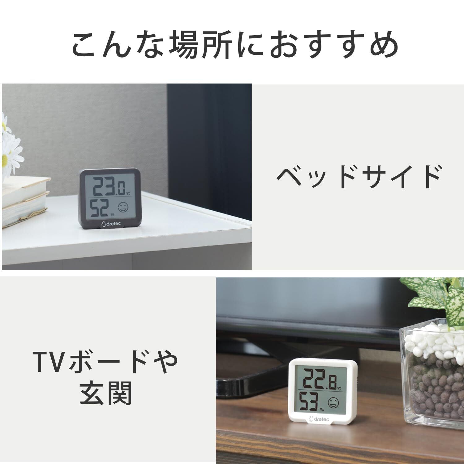 ドリテック(dretec) デジタル温湿度計 リテーモミニ デジタル 熱中症対策 5.5cm インフルエンザ 表情でお知らせ 温度 湿度 ホワイト