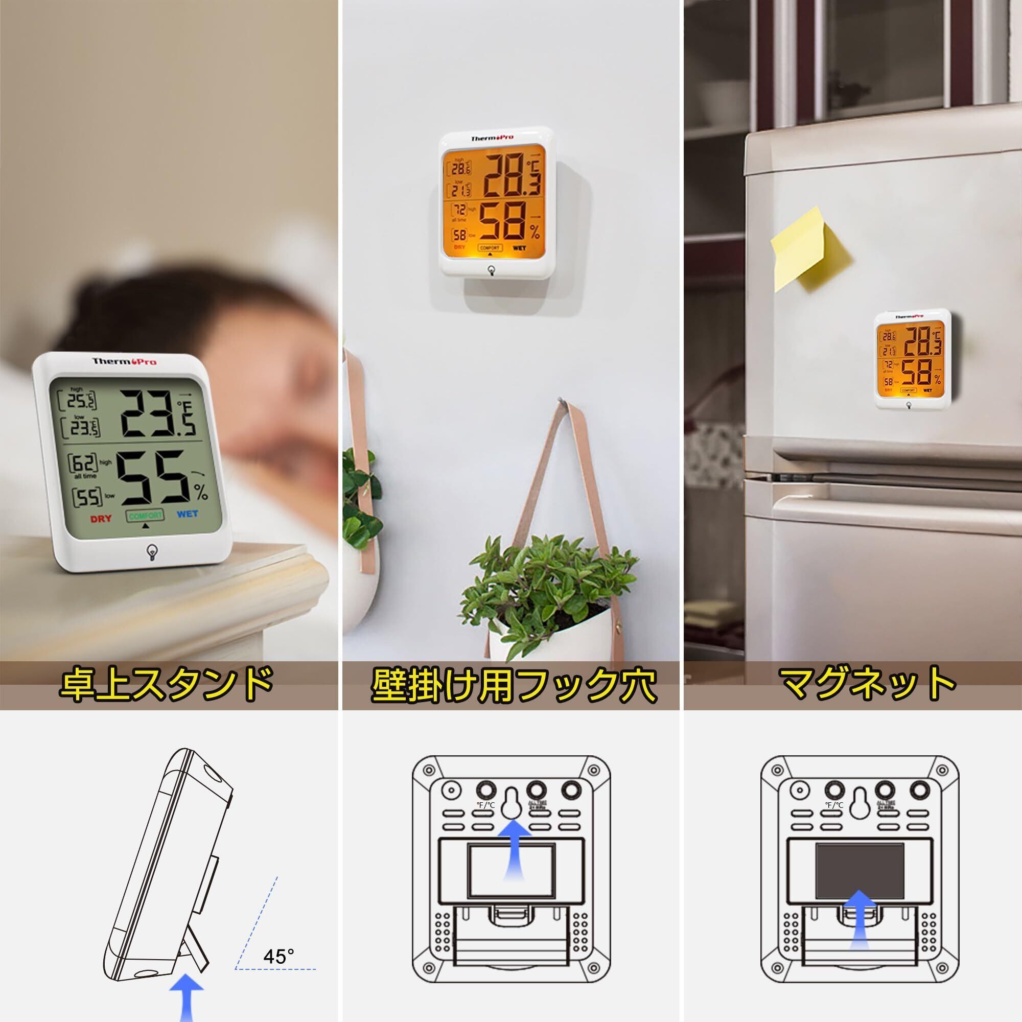 ThermoProサーモプロ 温湿度計 室内温度計デジタル 室内温度計湿度計 LCDバックライト付き 最高最低温湿度値表示 24時間データ記録 高精度 見やすい 快適度表示 インテリア 赤ちゃん 家庭用 三WAY設置 TP53
