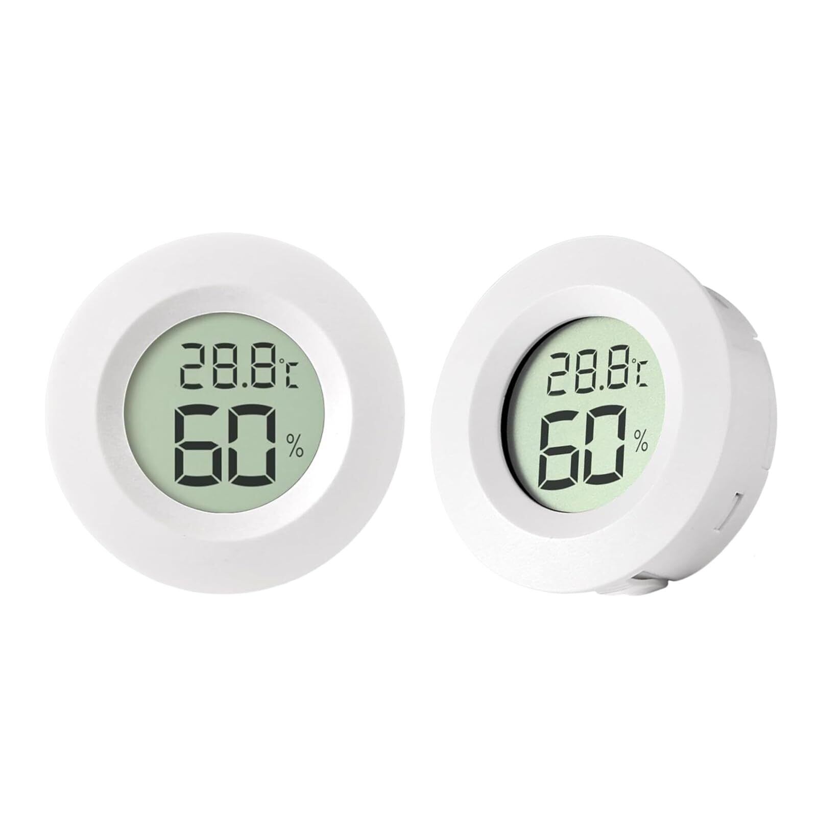 ミニ湿度計&温度計 デジタル液晶スクリーン 粘着/嵌入使用可能 家庭 飼育室 爬虫類 花屋部屋用 2本セット (ホワイト)