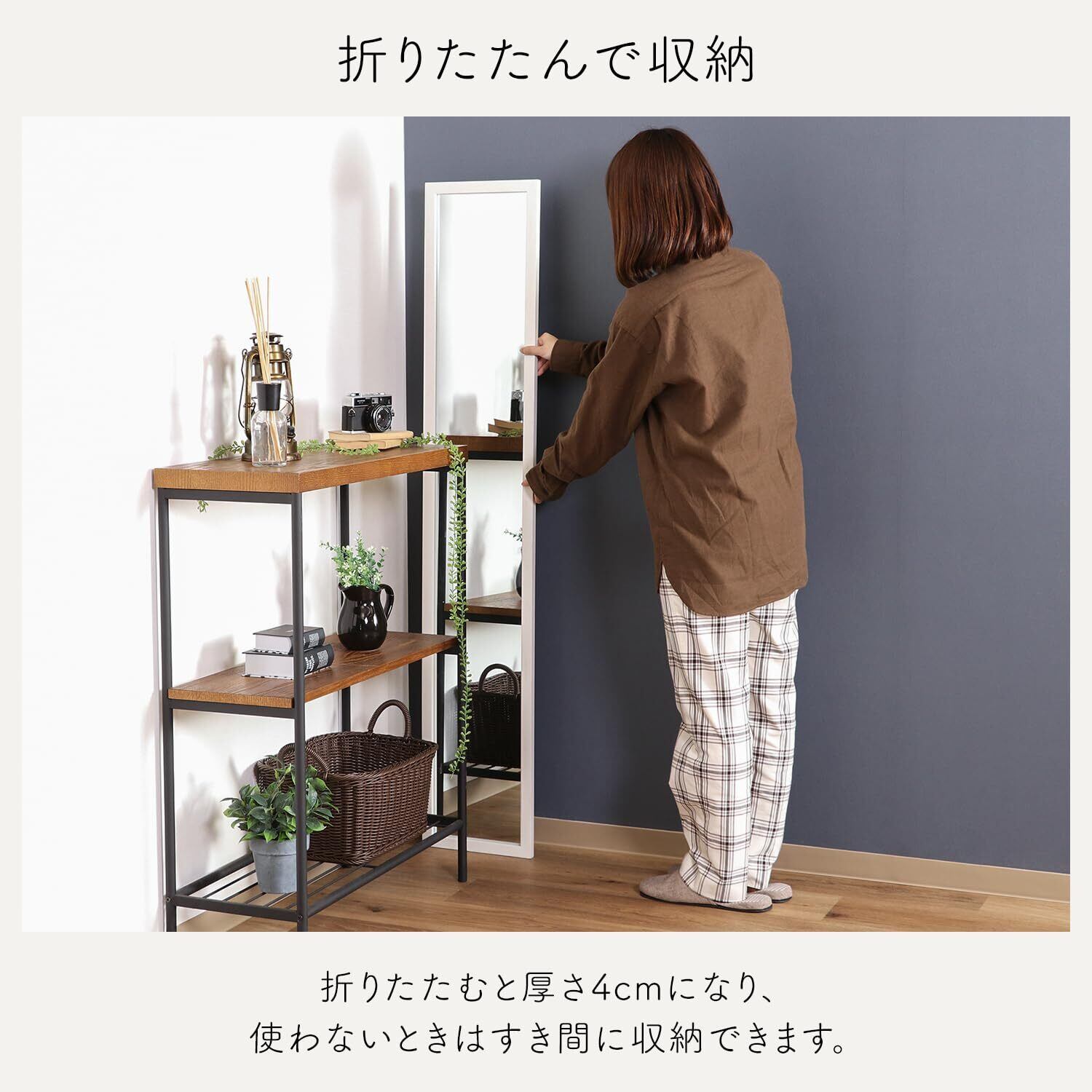 不二貿易 姿見 全身鏡 スタンドミラー 飛散防止加工 ルームミラー 木製 折りたたみ 一人暮らし 単身 幅27×奥行39×高さ147.5cm ホワイト 70120