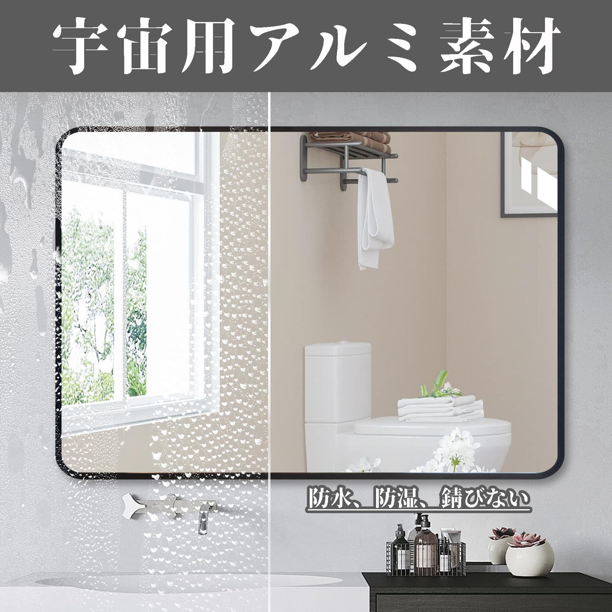【アルミ合金の丸角フレームデザイン】当社のミラーフレームは高品質のアルミニウム合金で作られており、高級感があります。壁掛けミラーとして、またはお部屋の装飾としてお使いいただけます。長方形の丸角フレームデザインは、柔らかい感触を示すだけでなく、手を切るのを防ぎます。バスルーム、玄関、ドレッサー、リビングルームなど、様々な場所で使用できます。