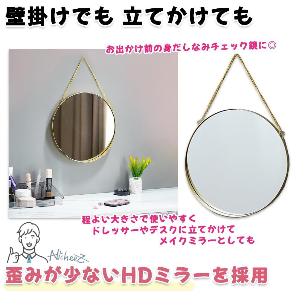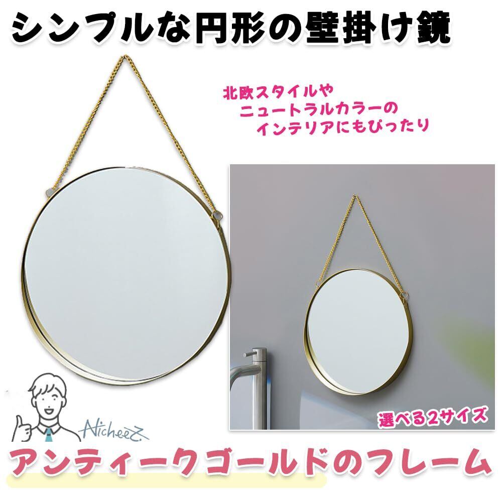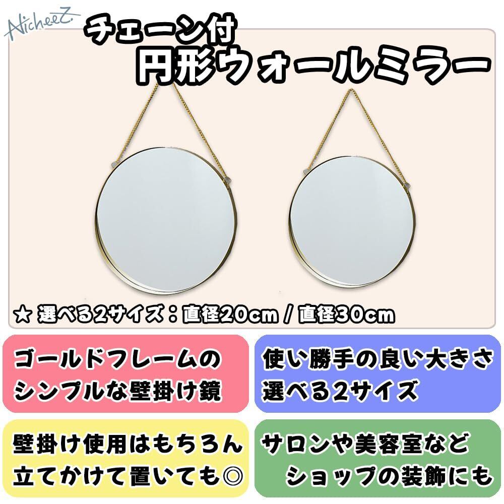 【商品内容】 チェーン付円形ウォールミラー 材質:アイアン カラー:ゴールド サイズ:直径:約20cm/30cm