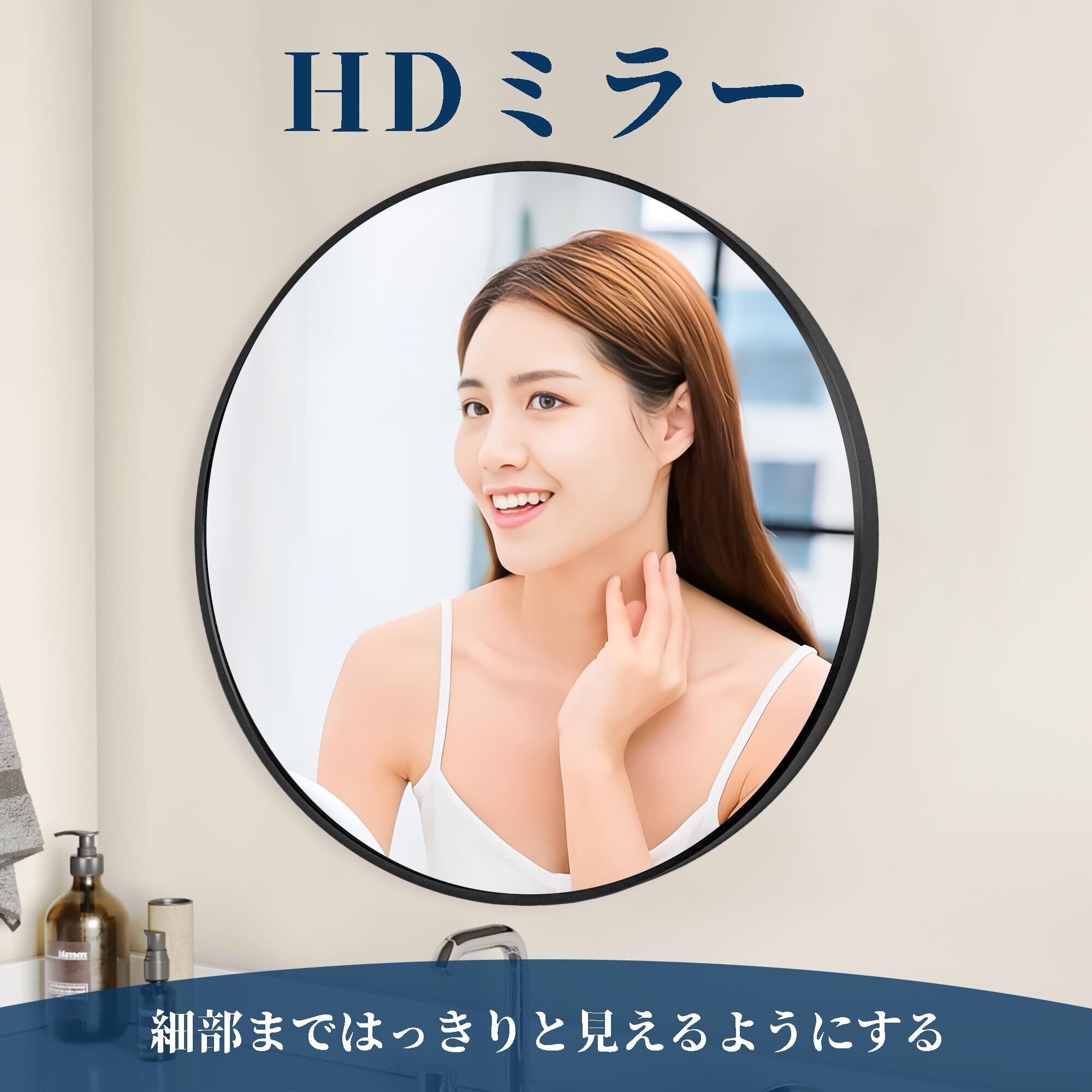鏡 壁掛けミラー 丸鏡 円形ミラー バスルーム鏡 ウォールミラー アルミフレーム 化粧鏡 玄関 洗面 トイレ(ブラック 直径30cm)