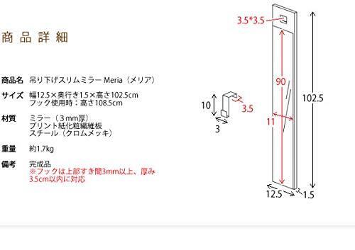 宮武製作所 壁掛けミラー Meria 幅12.5x奥102.5x高さ1.5cm 吊り下げ式 AR-MR02