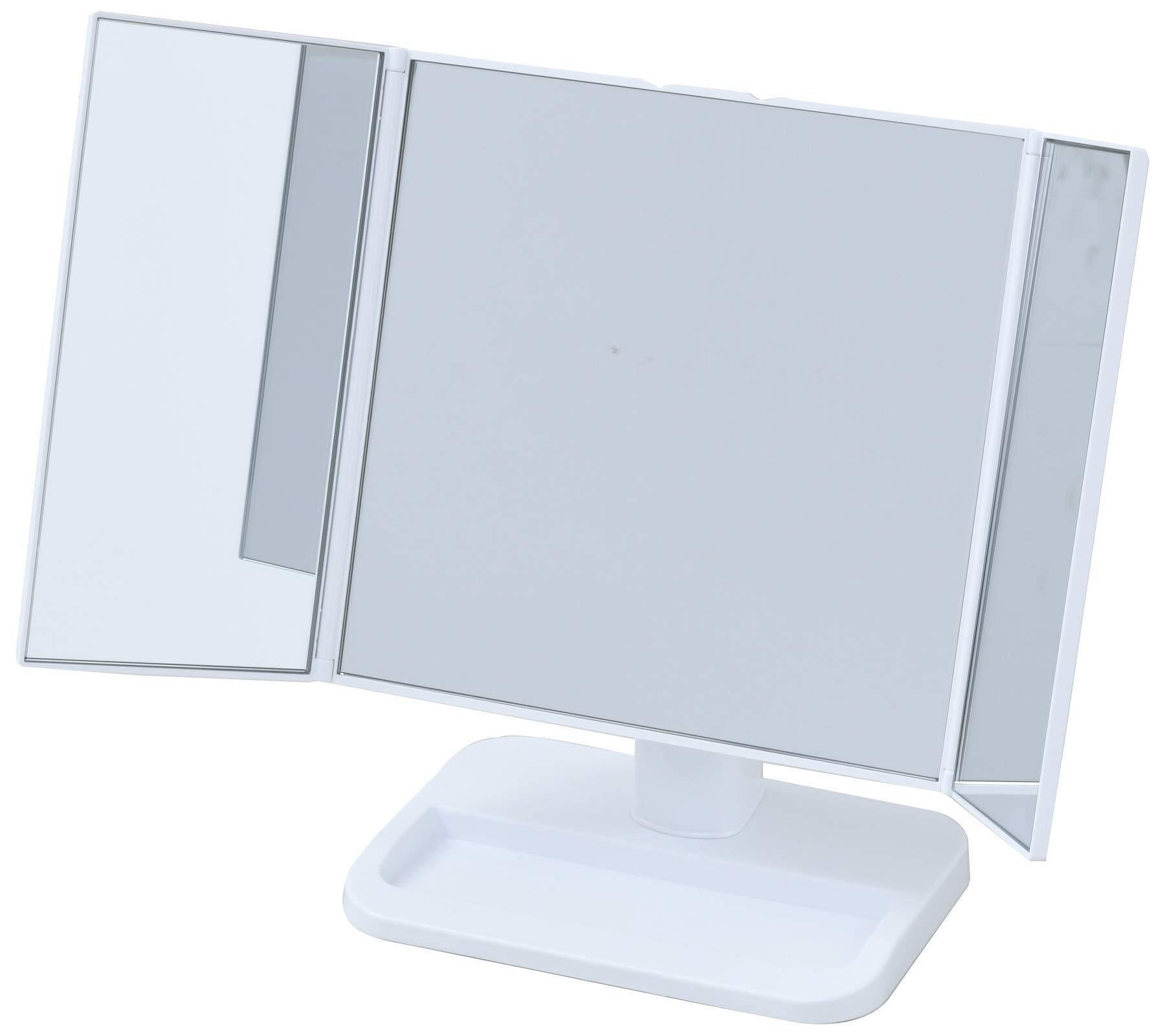 ●左右のミラーが開閉して見やすい卓上三面鏡●脚部にはお化粧道具の収納スペース付き●持ち運びも簡単でどこでも使えます