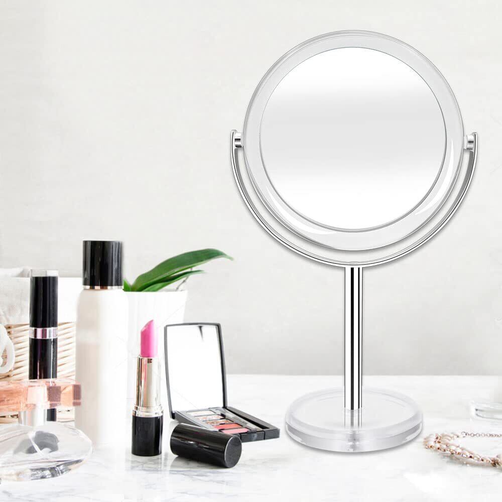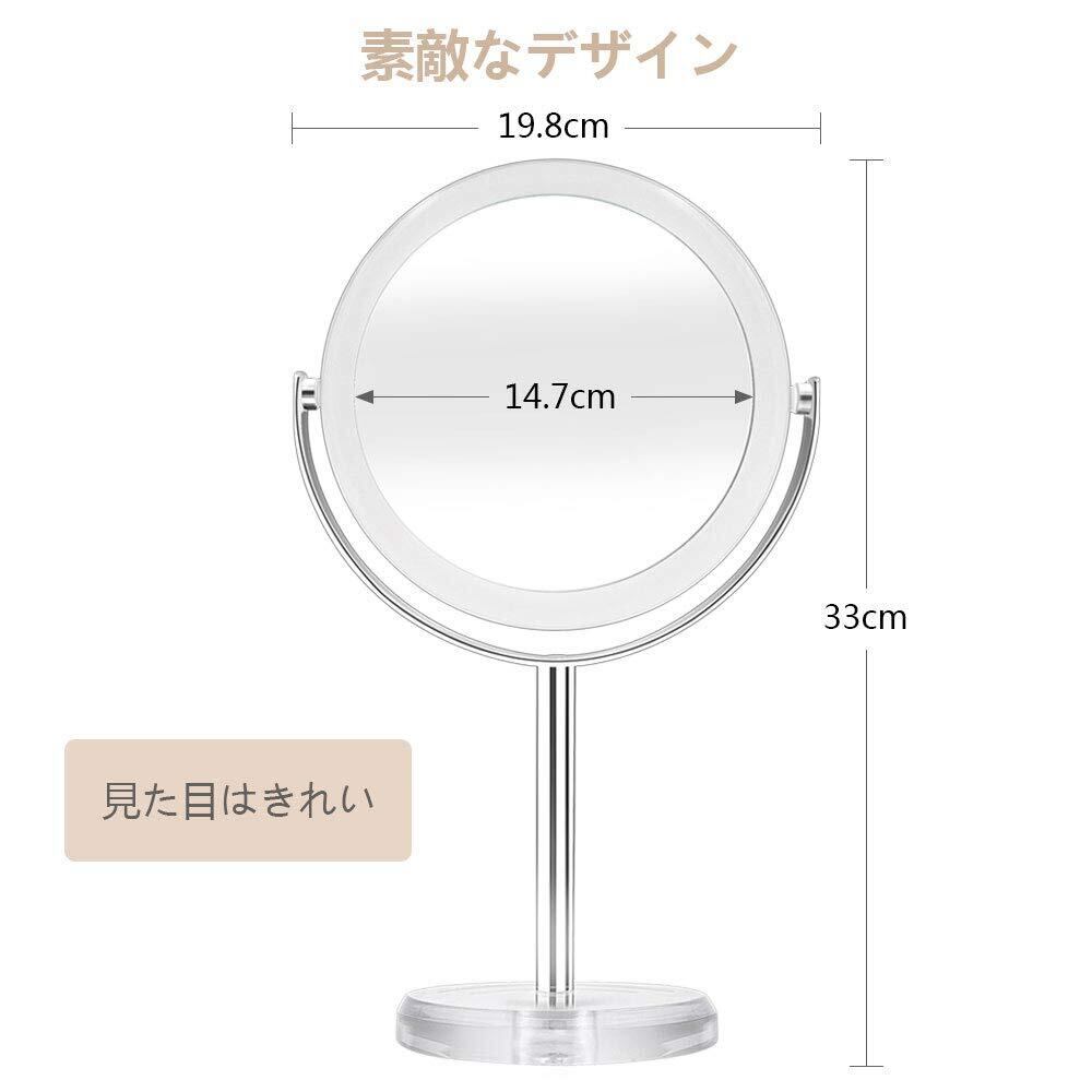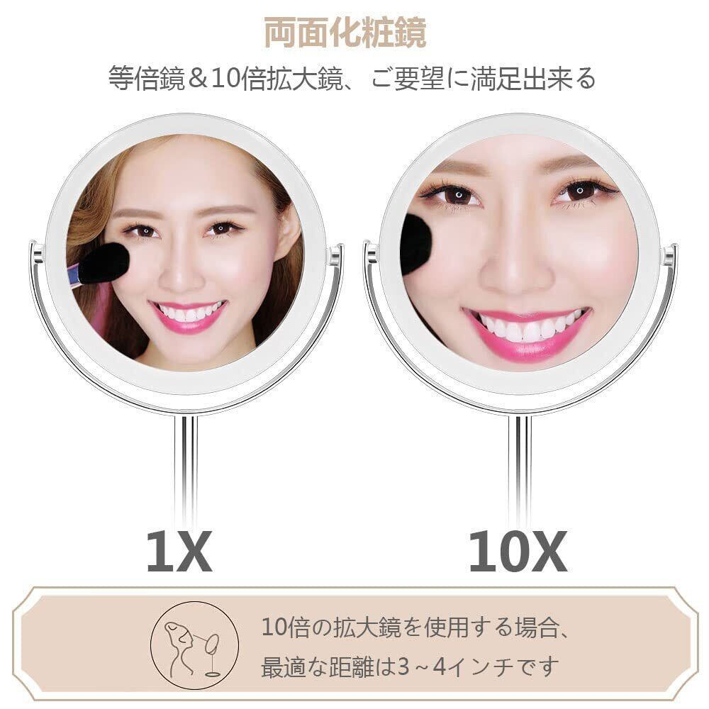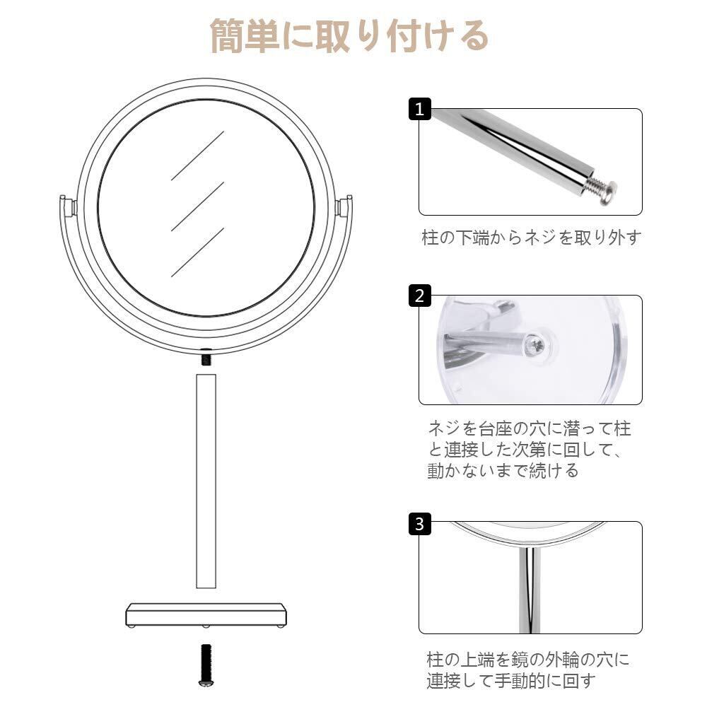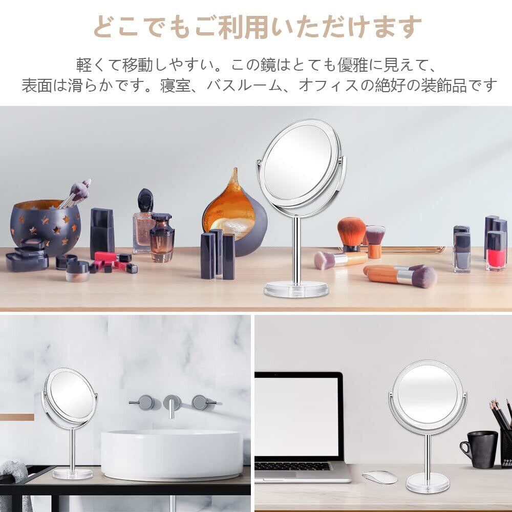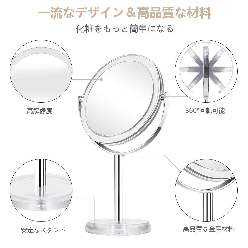10倍&等倍両面鏡 化粧鏡 卓上鏡 10倍拡大鏡 スタンドミラー 360°回転 メイクミラー 取り外せる