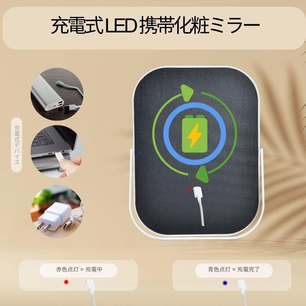 ③ 充電式・折りたたみで持ち運び便利 USB充電式で電池交換不要。フル充電で長時間使用可能です。折りたたみ式・薄型設計のため、バッグやスーツケースに収納しやすく、旅行や外出先でも活躍。女優ミラー 持ち運び用途にも対応。