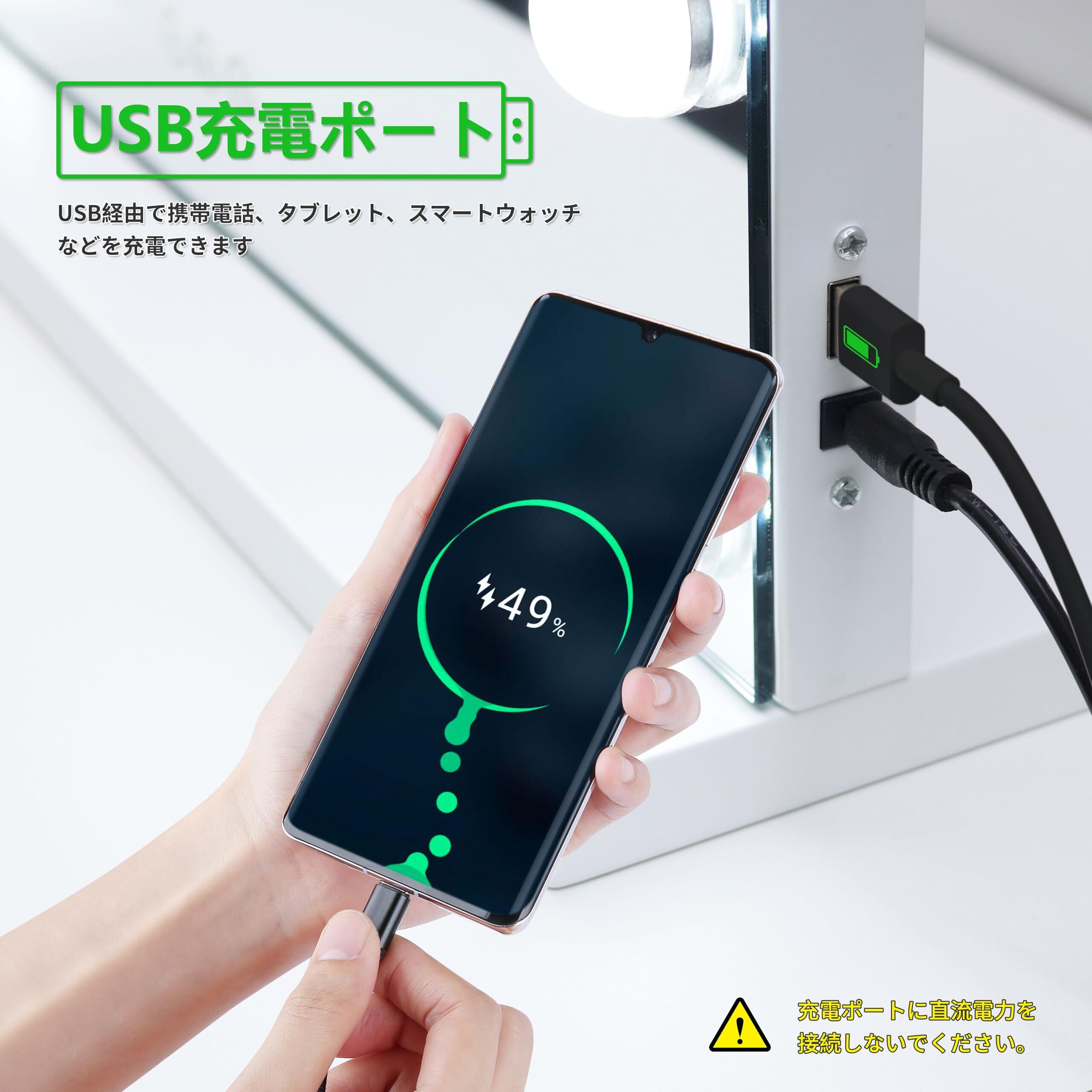 【特価商品】女優ミラー ハリウッド女優鏡 化粧ライト鏡 14個LED電球付き化粧鏡 壁掛け/卓上両用ミラー 三色照明モード 明るさ調節可能 10倍拡大鏡&USBポート付き ホワイト…