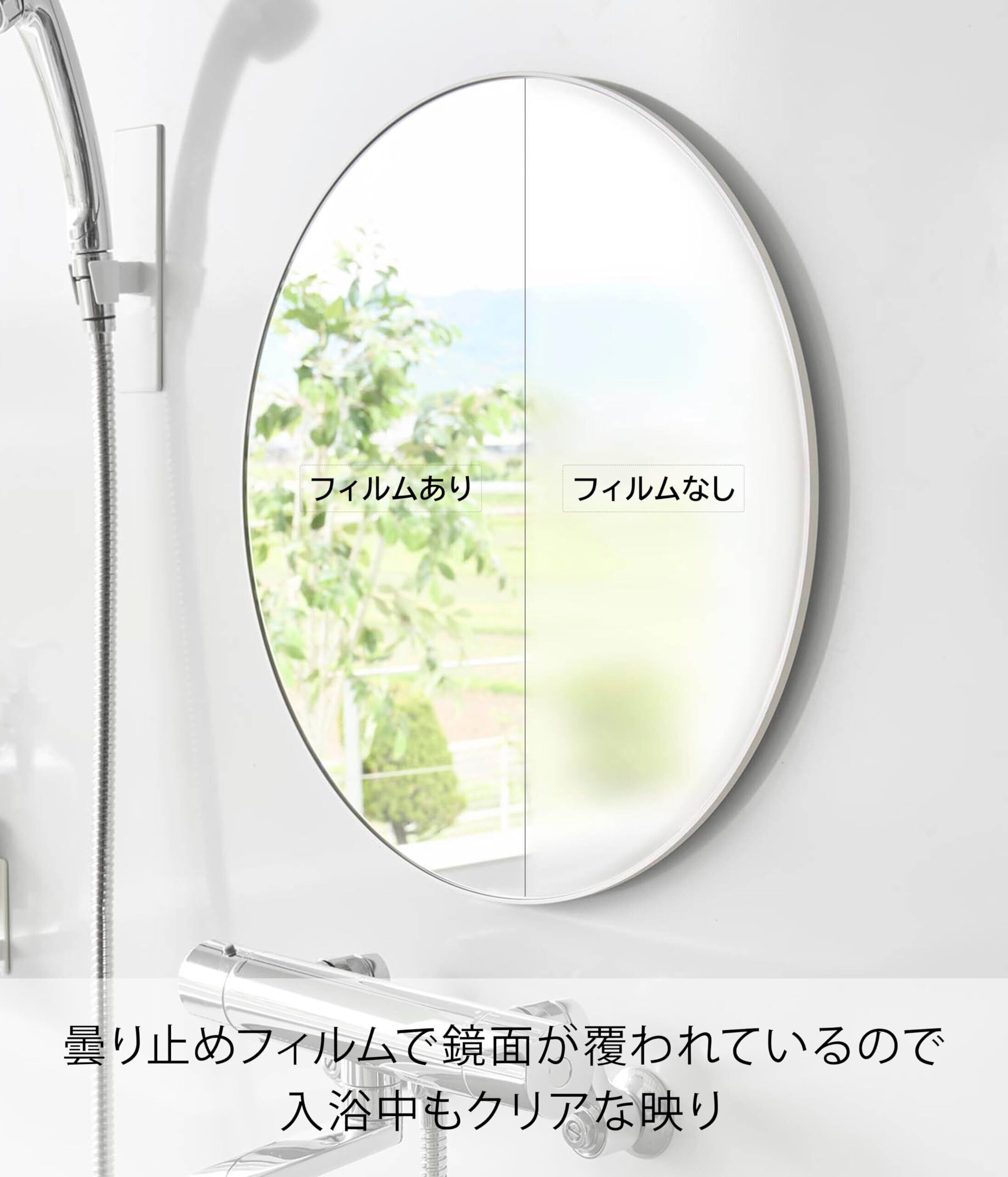 美しく、透明感があるガラス製バスルームミラー丸型42cmです。マグネットでお好みの場所に簡単に設置できます。曇り止め加工を施したガラス製バスルームミラーは、クリアで透明感がありキズがつきにくい仕様。フレームと壁の隙間に指を入れやすい形状で、取り外しも簡単。お掃除がしやすく清潔に保てます。さらに、曇り止めフィルムを全面に粘着加工しているため、快適にお使いいただけます。