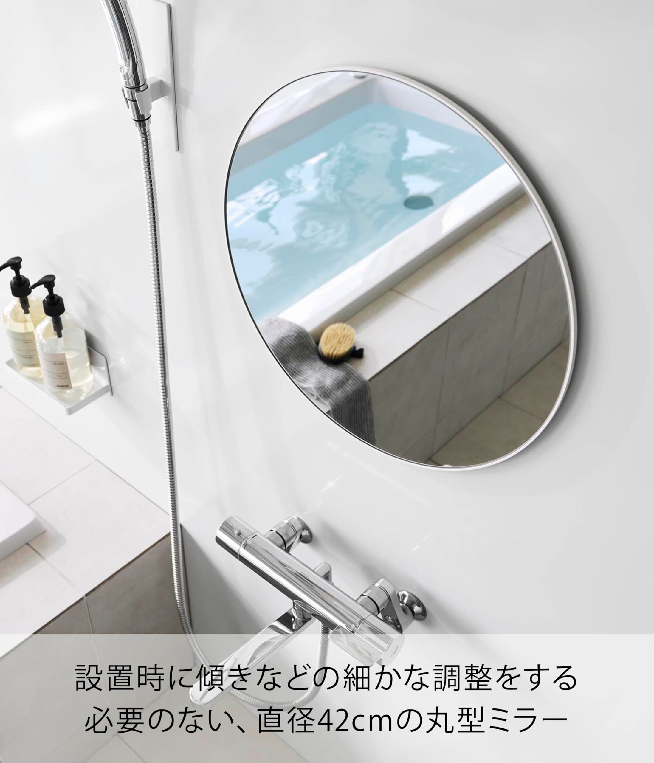 山崎実業(Yamazaki) マグネット バスルームミラー 丸型 42cm ホワイト W42×D1.4×H42cm タワー tower 曇り止め加工 ガラス製 磁石 簡単取り付け 浴室 鏡 10177