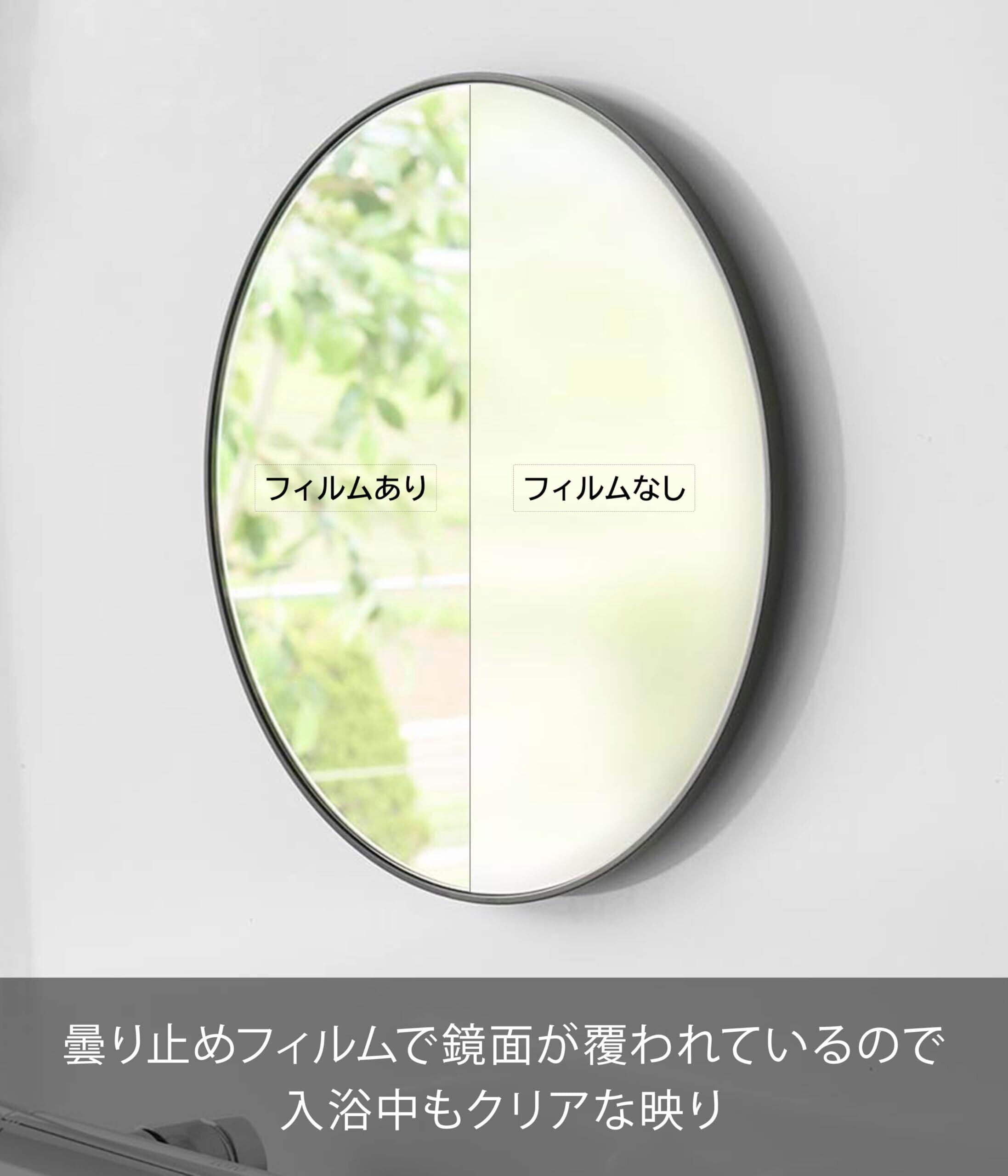 曇り止め加工を施したガラス製バスルームミラーは、クリアで透明感がありキズがつきにくい仕様。