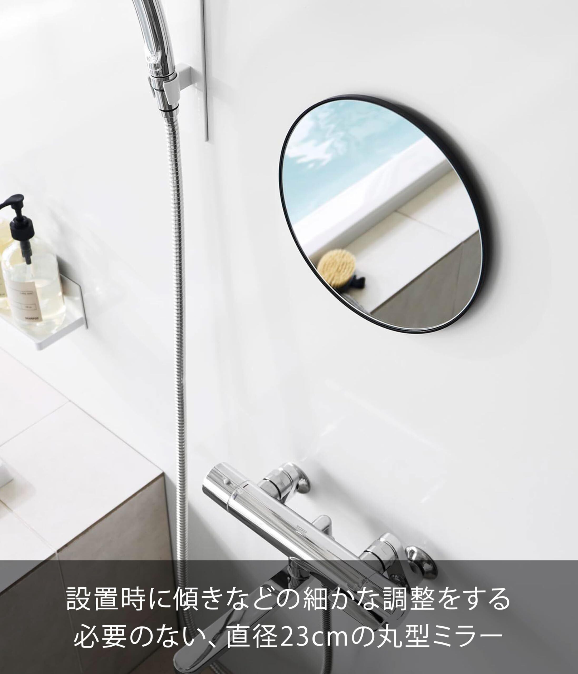 山崎実業(Yamazaki) マグネット バスルームミラー 丸型 23cm ブラック W23×D1.4×H23cm タワー tower 曇り止め加工 ガラス製 磁石 簡単取り付け 浴室 鏡 10176