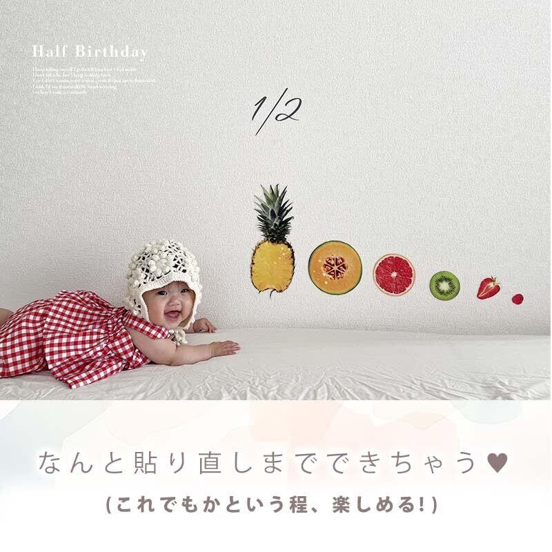 スクウェアショップ ウォールステッカー ハーフカットフルーツ A4×8枚 w0033 誕生日 飾り フルーツ フェイク 果物 半分 ハーフバースデー ハーフ 6か月 バースデー ギフト 受注印刷