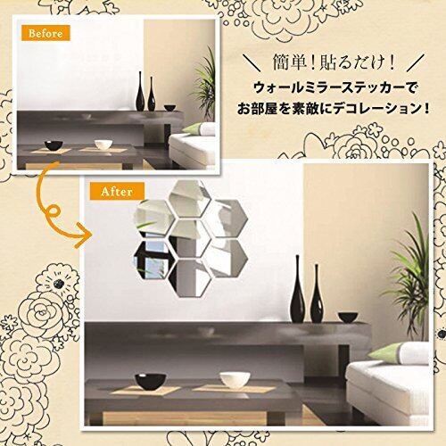 【商品内容】①ウォールミラーステッカー(六角形)×12枚[表面:ミラー/裏面:両面テープ] ②貼り付け方の日本語説明書