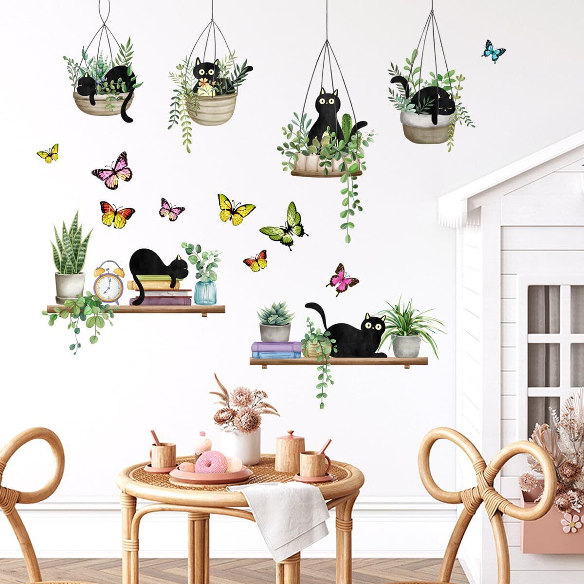 ZARROUEAウォールステッカー猫と木 つる植物 つりラン 緑の部屋の壁のシールリビングルームの壁のシール diy ウォールステッカー 北欧 蝶 花 緑 観葉植物 モダンアート ポスター ウォールペーパーオシャレな部屋インテリア 装飾 (G-04)
