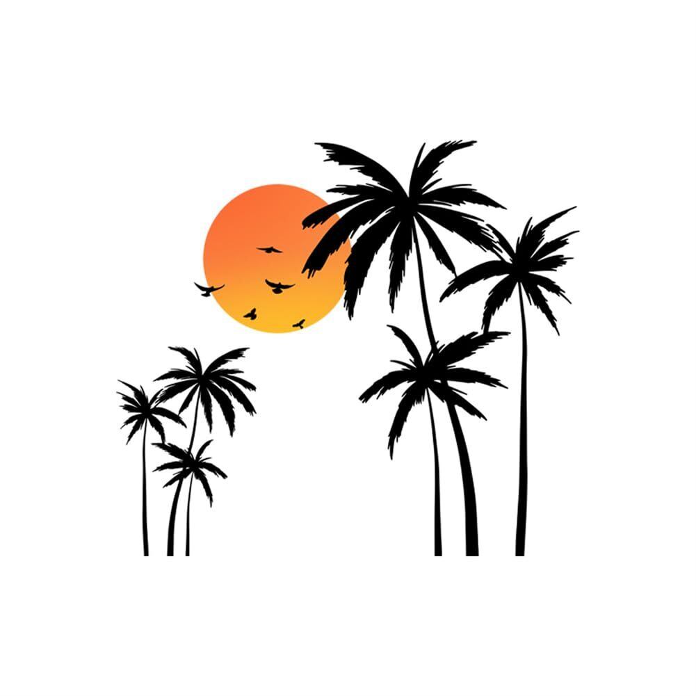 HOTIYOK ウォール ステッカー おしゃれ 緑色 ココナッツの木 夕焼け 雁木 黒 モノトーン 男の子 女の子 子供 部屋 壁 シール DIY 壁紙 幼稚園 保育園 ウォール アート 御洒落 ウォール ペーパー wall sticker 飾り ウォール デコ 寝室用