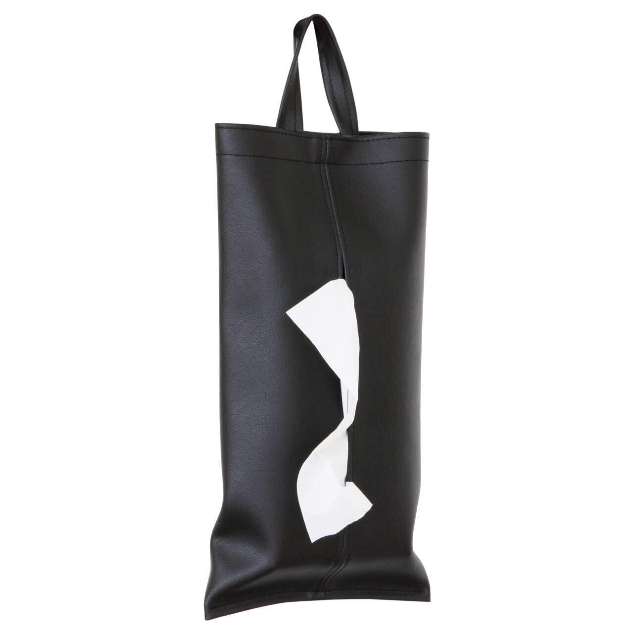 【TEES FACTORY】 細部までこだわった日本製 どこにでも掛けられる職人仕上げのティッシュケース《KETY 国産素材 PVCレザー 抗菌 撥水 車内 キッチン 洗面所 寝室 リビング ギフト プレゼント(ブラック)