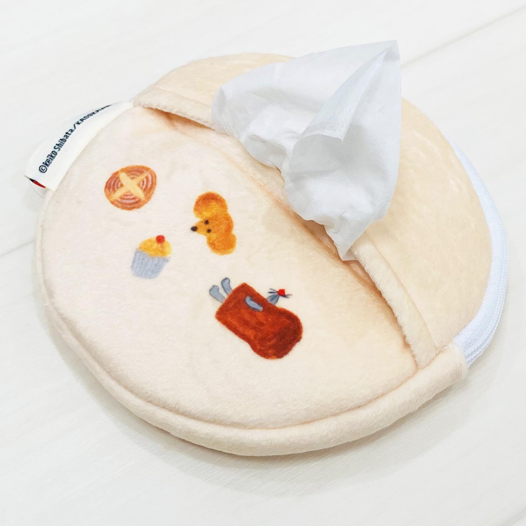MORIPiLO パンどろぼう ティッシュケース グッズ 小物入れ ぬいぐるみ ポーチ 小さめ 可愛い 13x13cm (ベージュ) キャラクター まくらのモリシタ