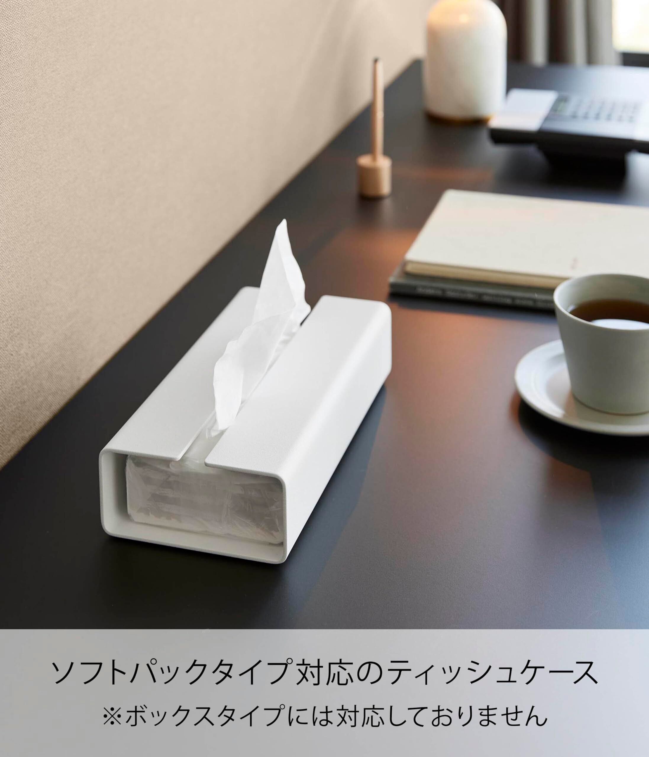 【在庫セール】山崎実業(Yamazaki) 入れ替え簡単 ソフトパック ティッシュケース ホワイト W23×D11.4×H5.6cm タワー tower 横から取り出せる ソフトパックティッシュ専用 10450