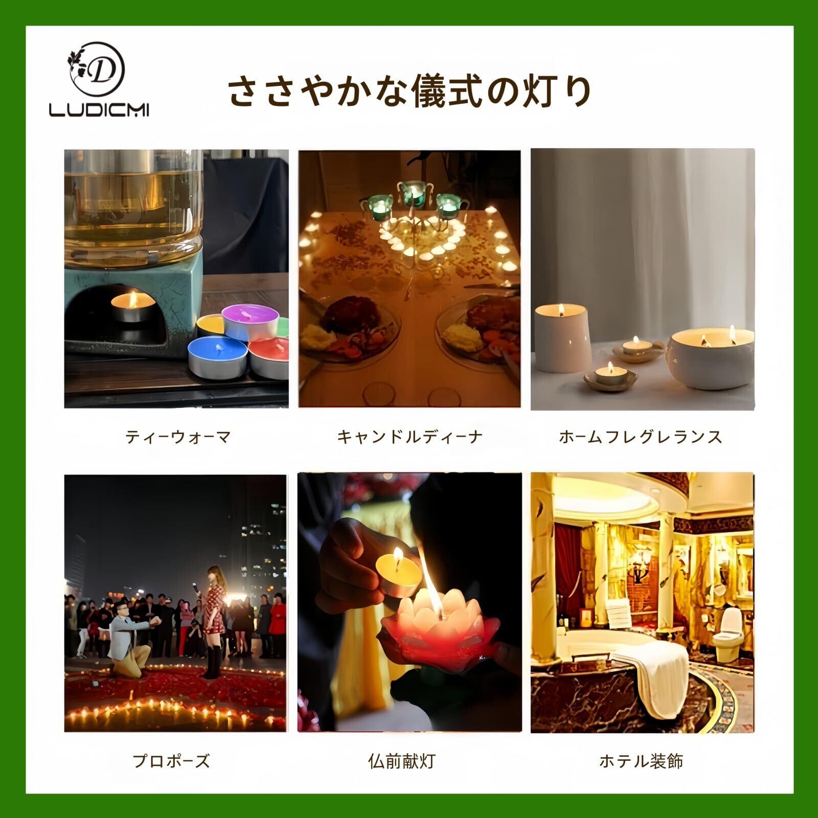 ・無香料のティーキャンドルは、クリスマスやバレンタインデーなどのデコレーションに最適で、サンタやキャンドルライトと共に使うことで、さらに楽しい時間を過ごせます。