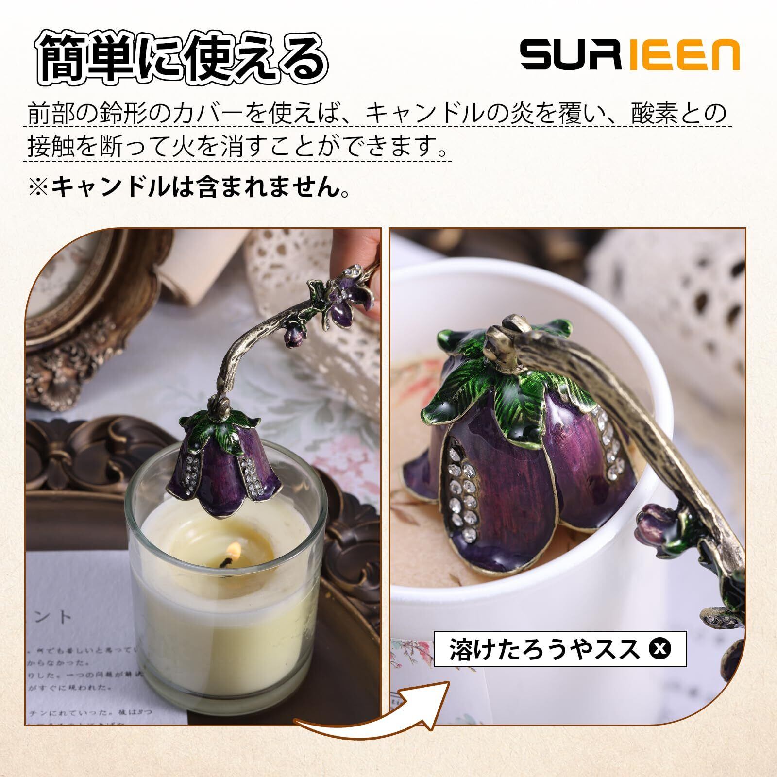 【完璧な贈り物】:このローソク火消のデザインは、ヴィンテージの高級感があり、優雅でファッショな外観で上品な雰囲気を醸し出します。魅力的な花の装飾や取っ手の彫刻だけでなく、キャンドル愛好家や友人や親戚への贈り物として、または自宅の装飾品として使用することができます。